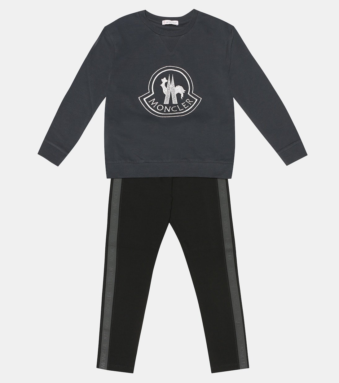 Moncler Enfant accompagne vos petits lors de leurs courses folles avec ce confortable pantalon de survêtement en jersey noir, contrasté de bandes grises en gros-grain siglé sur les côtés. Pourvu d’une taille élastiquée, ce modèle sera de rigueur lors de chaque sortie en plein air.