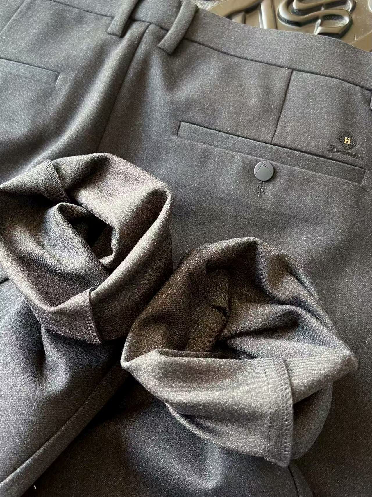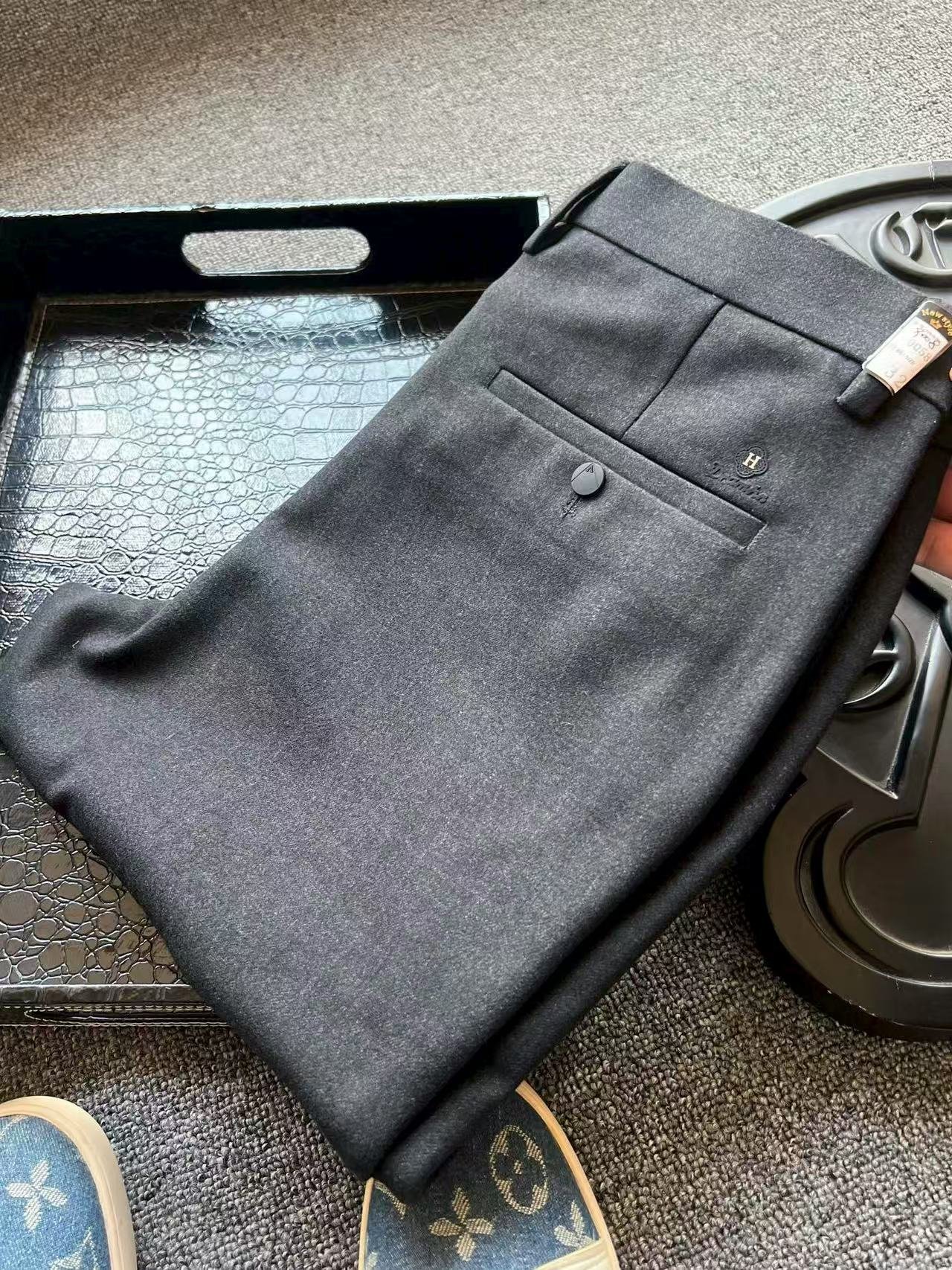Pantalon Hermès en laine mélangée, coupe droite semi-ajustée avec broderie H — élégance, confort et qualité irréprochable.