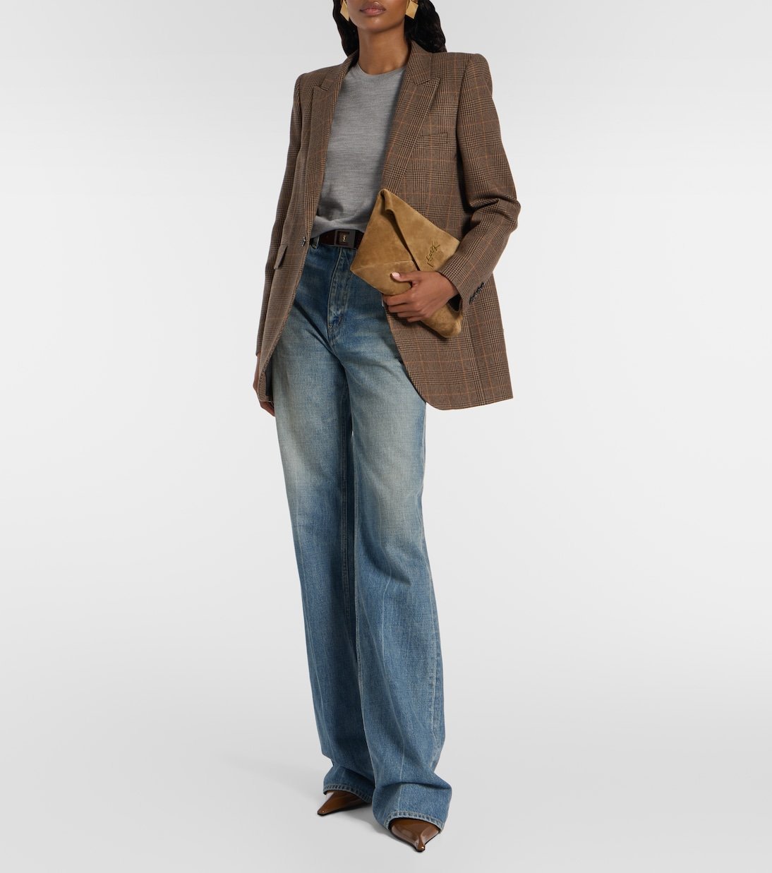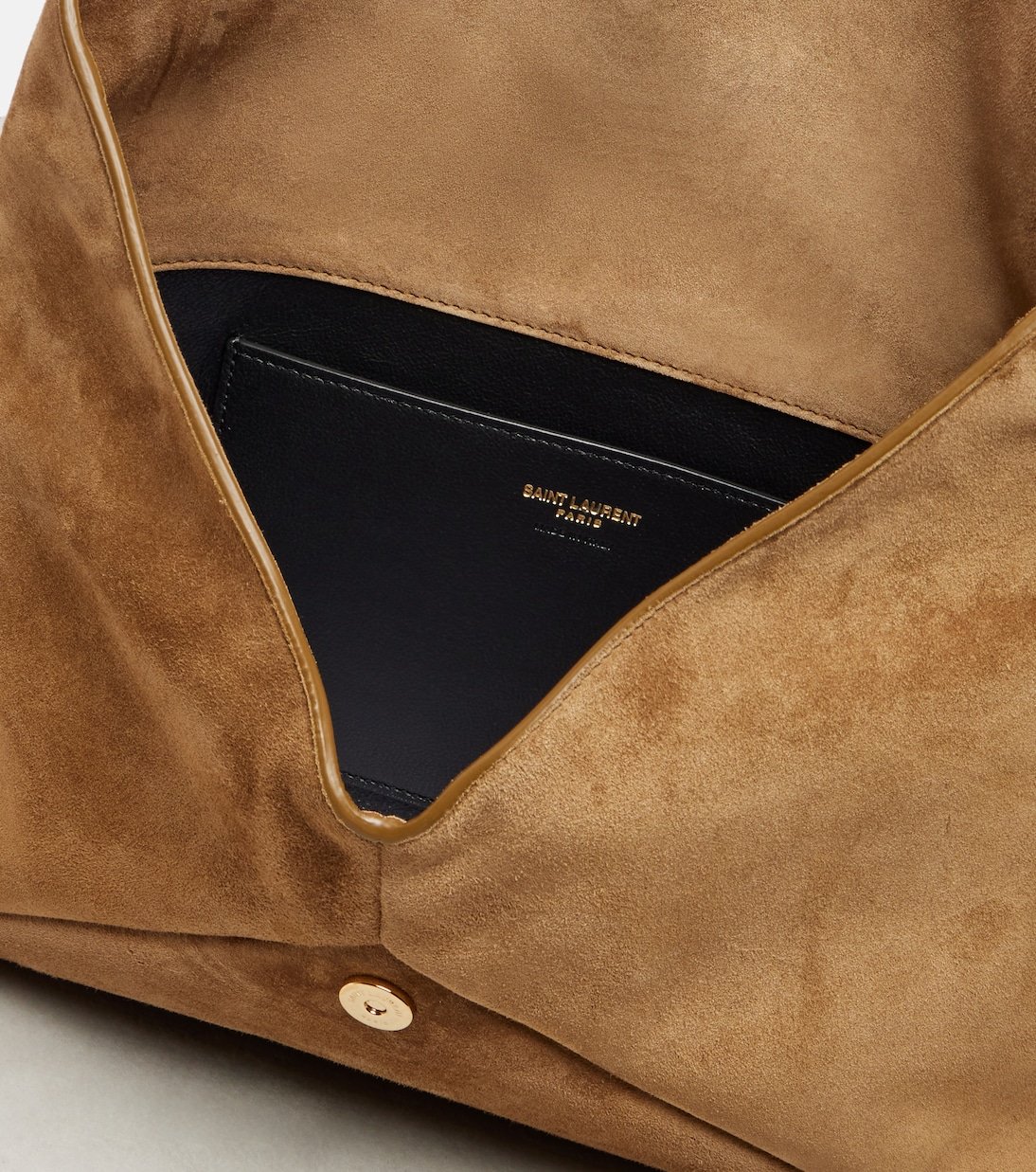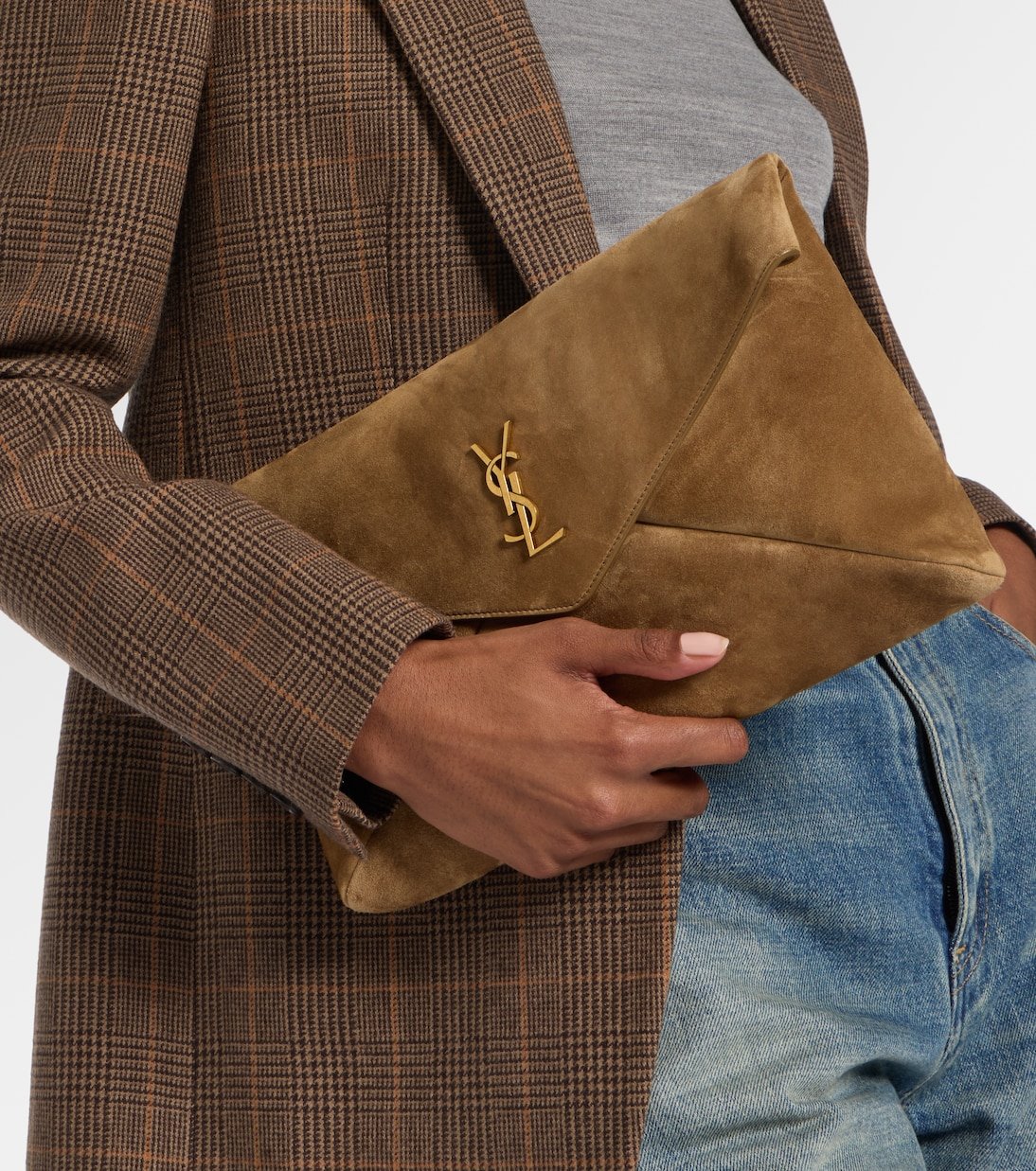 Le monogramme YSL, l’un des symboles les plus célèbres de la mode, se compose des initiales entremêlées du fondateur de Saint Laurent. Rehaussée de l’ornement emblématique, la pochette Cassandre est réalisée en daim et adopte une silhouette enveloppe classique.