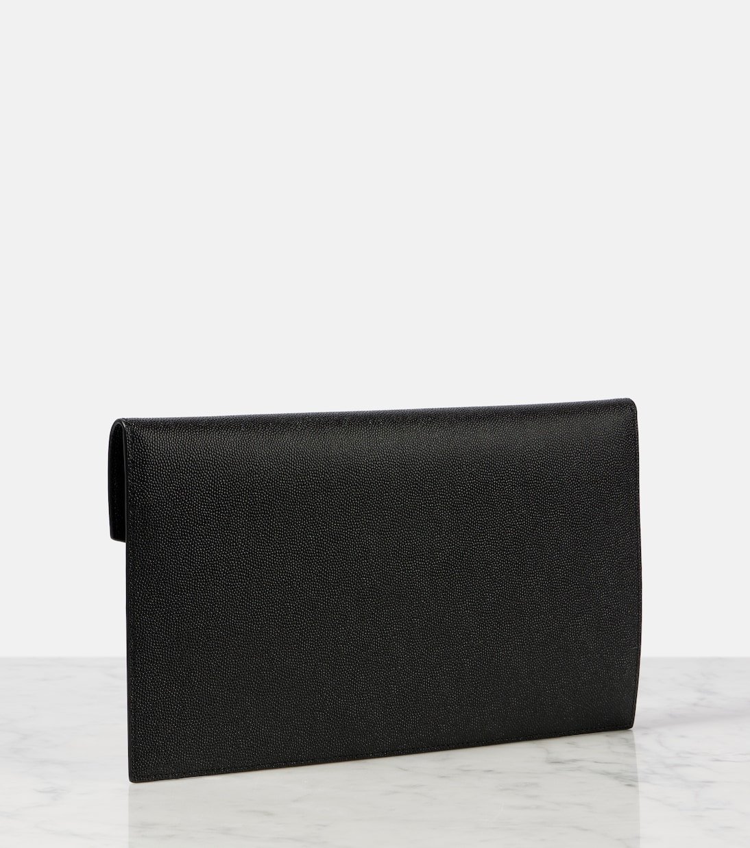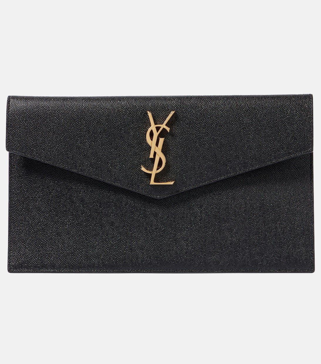 Exsudant une élégance discrète avec sa silhouette enveloppe aux lignes épurées, la pochette Uptown vous est offerte par Saint Laurent, en témoigne le monogramme doré ornant son rabat. Confectionnée en Italie en cuir noir grainé, elle accueillera vos essentiels du jour comme du soir.