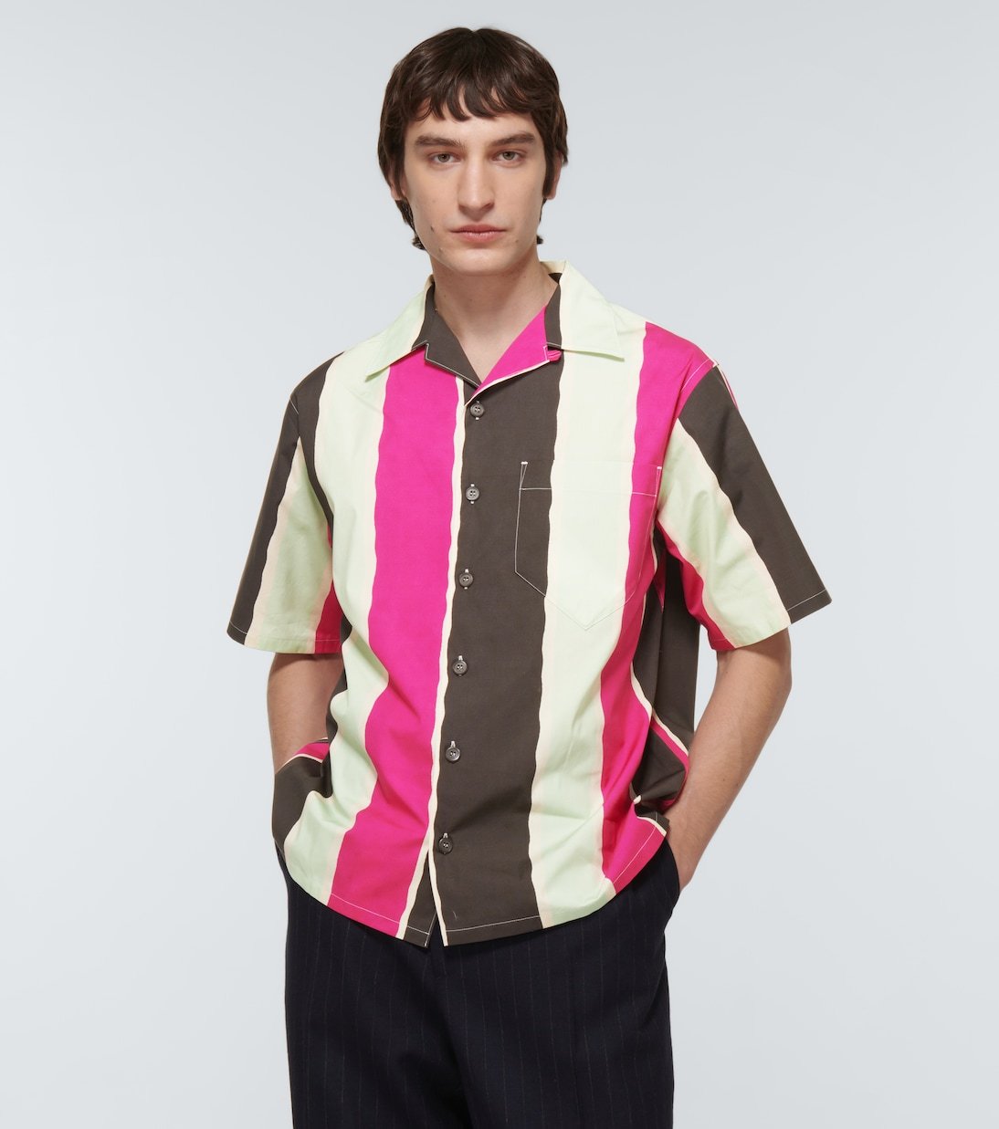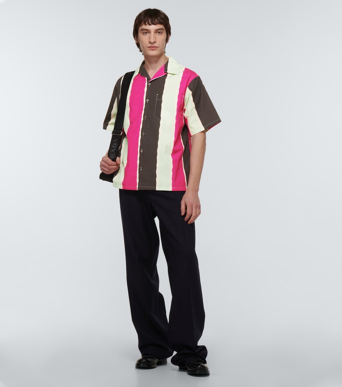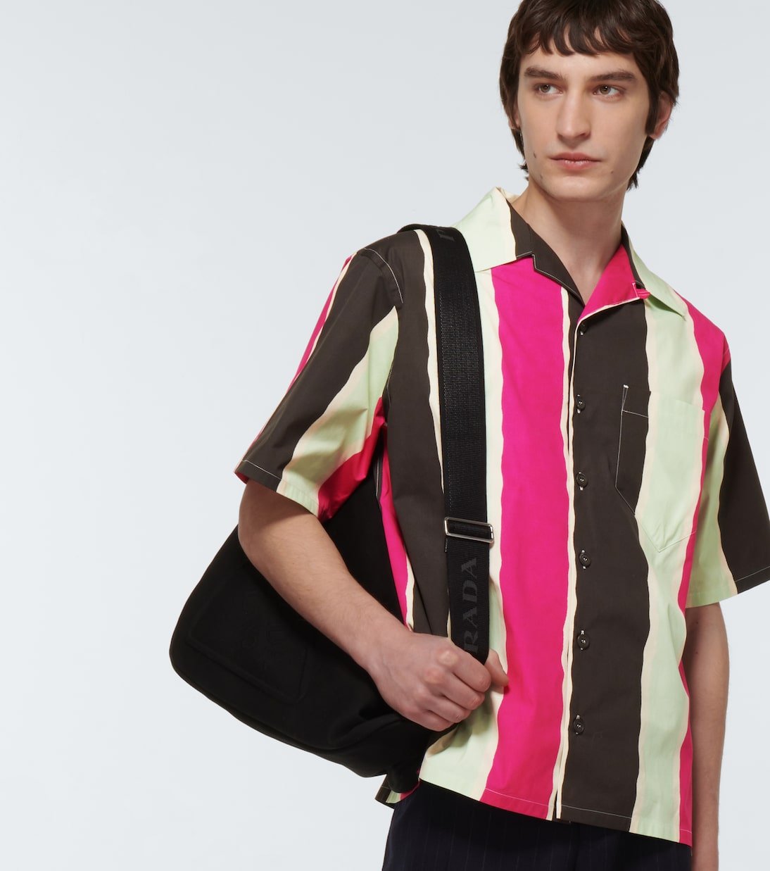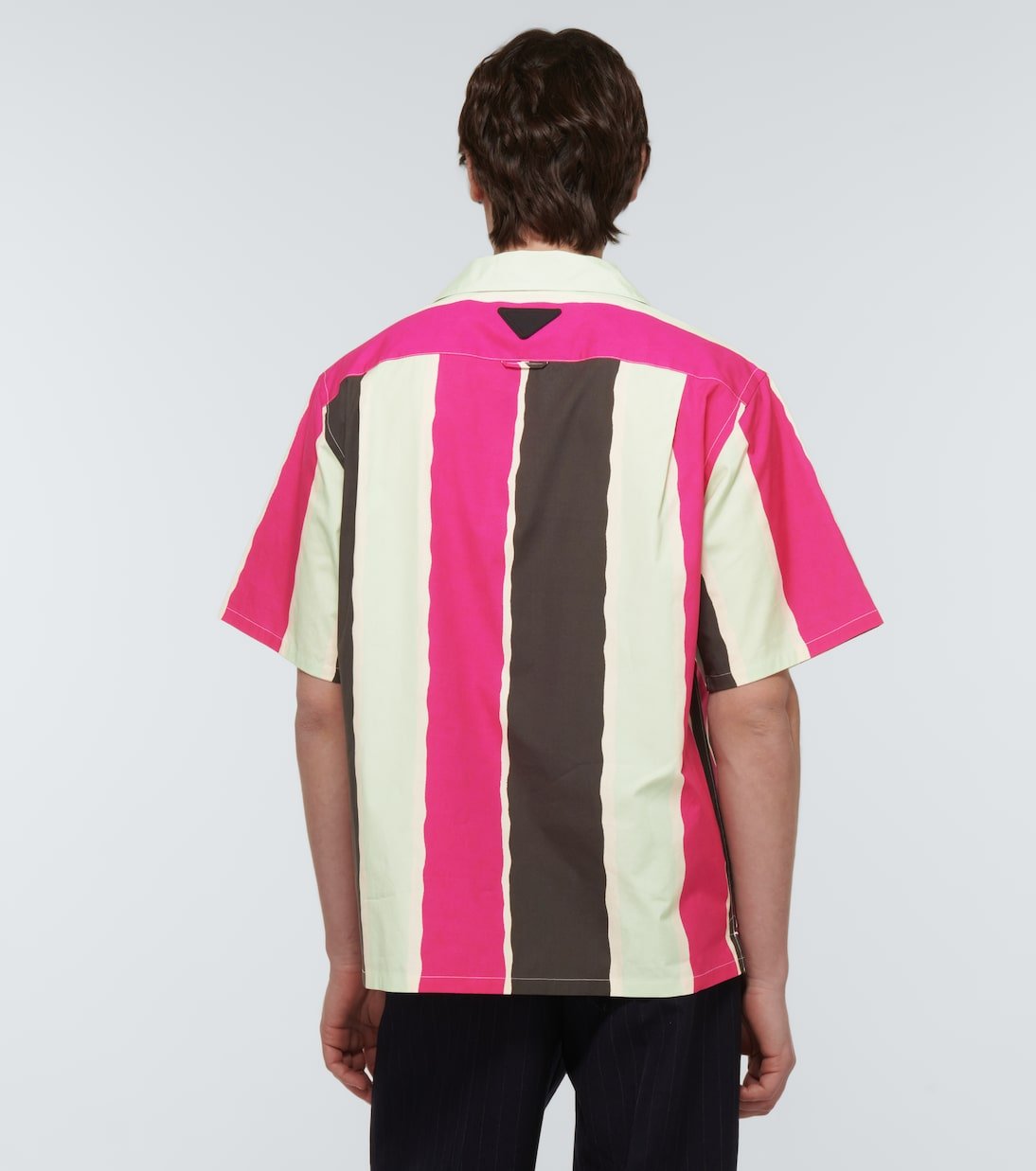 Cet audacieux polo Prada en coton mélangé arbore une association multicolore de rose, marron et vert pastel. Cette pièce présente une coupe classique décontractée.