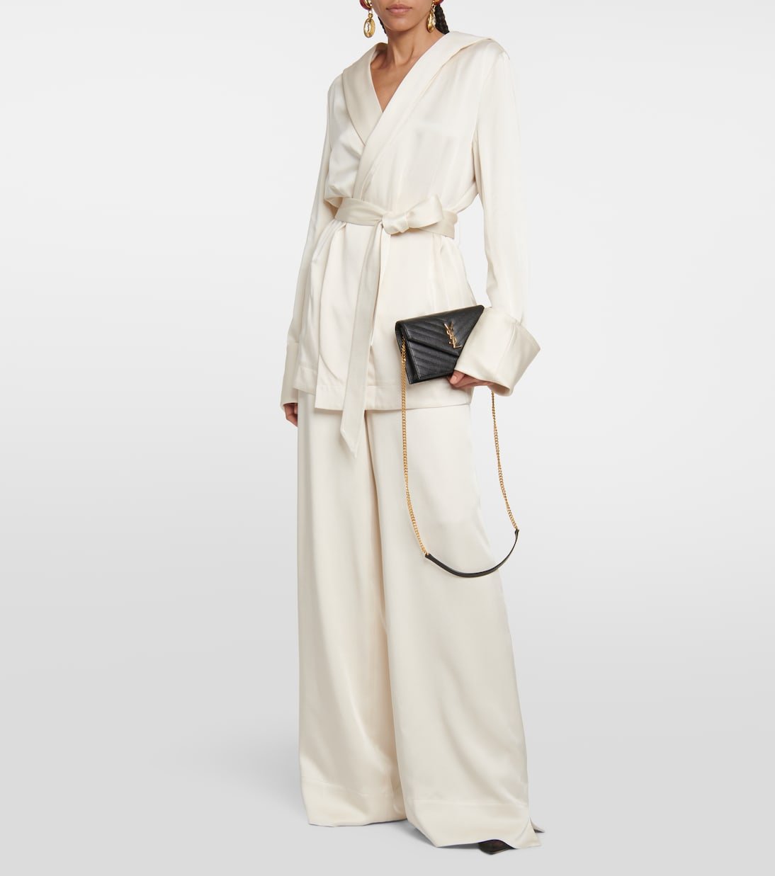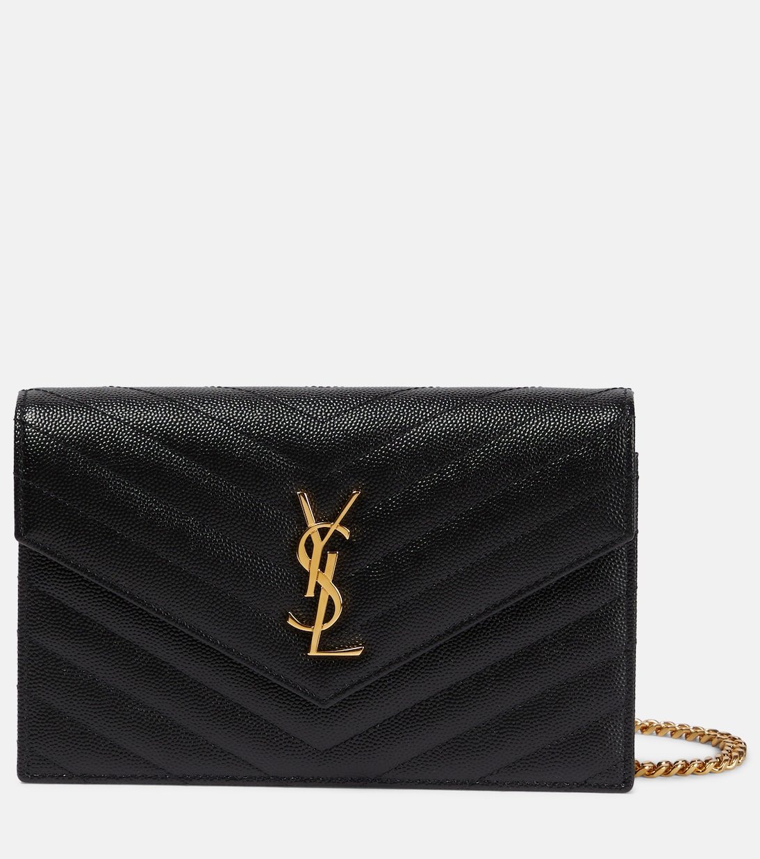 Apportez une note glamour minimaliste à vos ensembles avec le portefeuille à chaîne Cassandre matelassé de Saint Laurent. Réalisé en cuir noir matelassé, ce modèle à monogramme métallique est doté de huit fentes à cartes et d’un porte-monnaie.