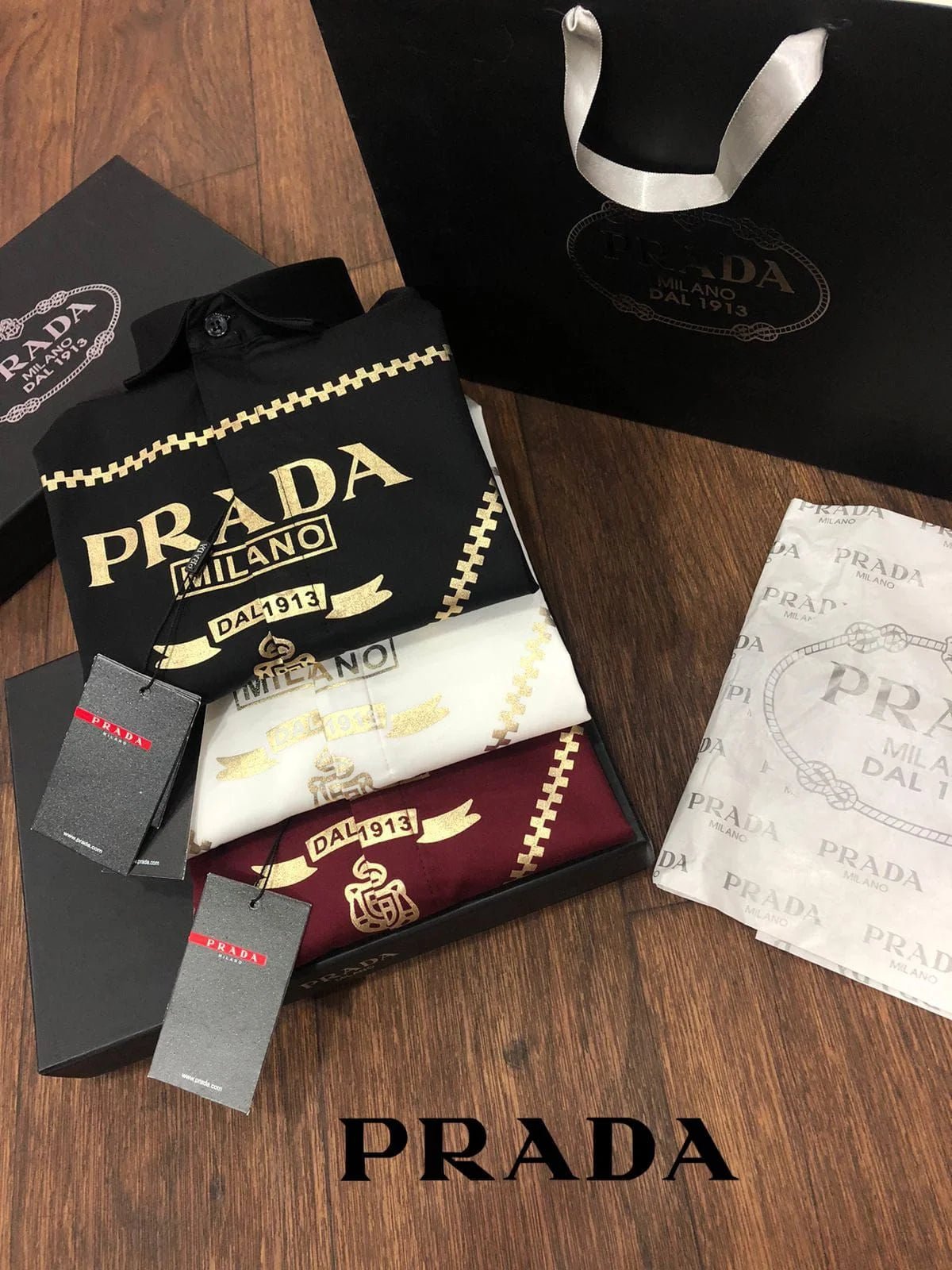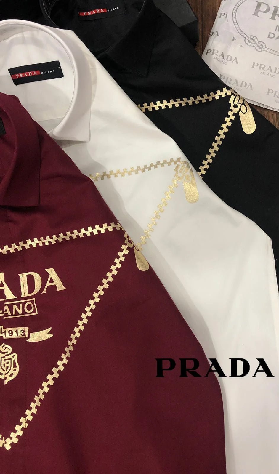 PRADA || Chemise à manches longues en popeline avec logo triangulaire