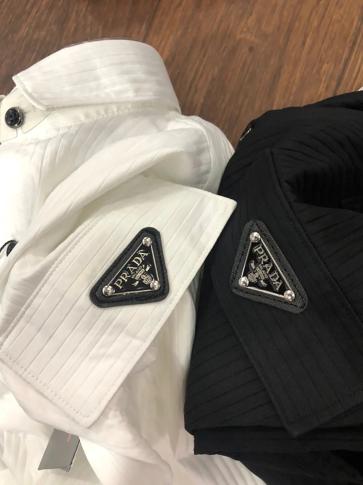 PRADA || Chemise en popeline de coton à double poche et logo métallique