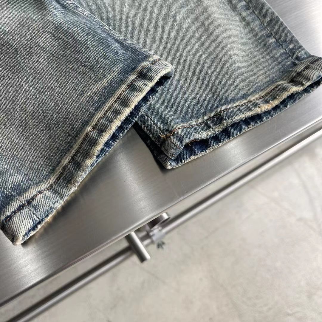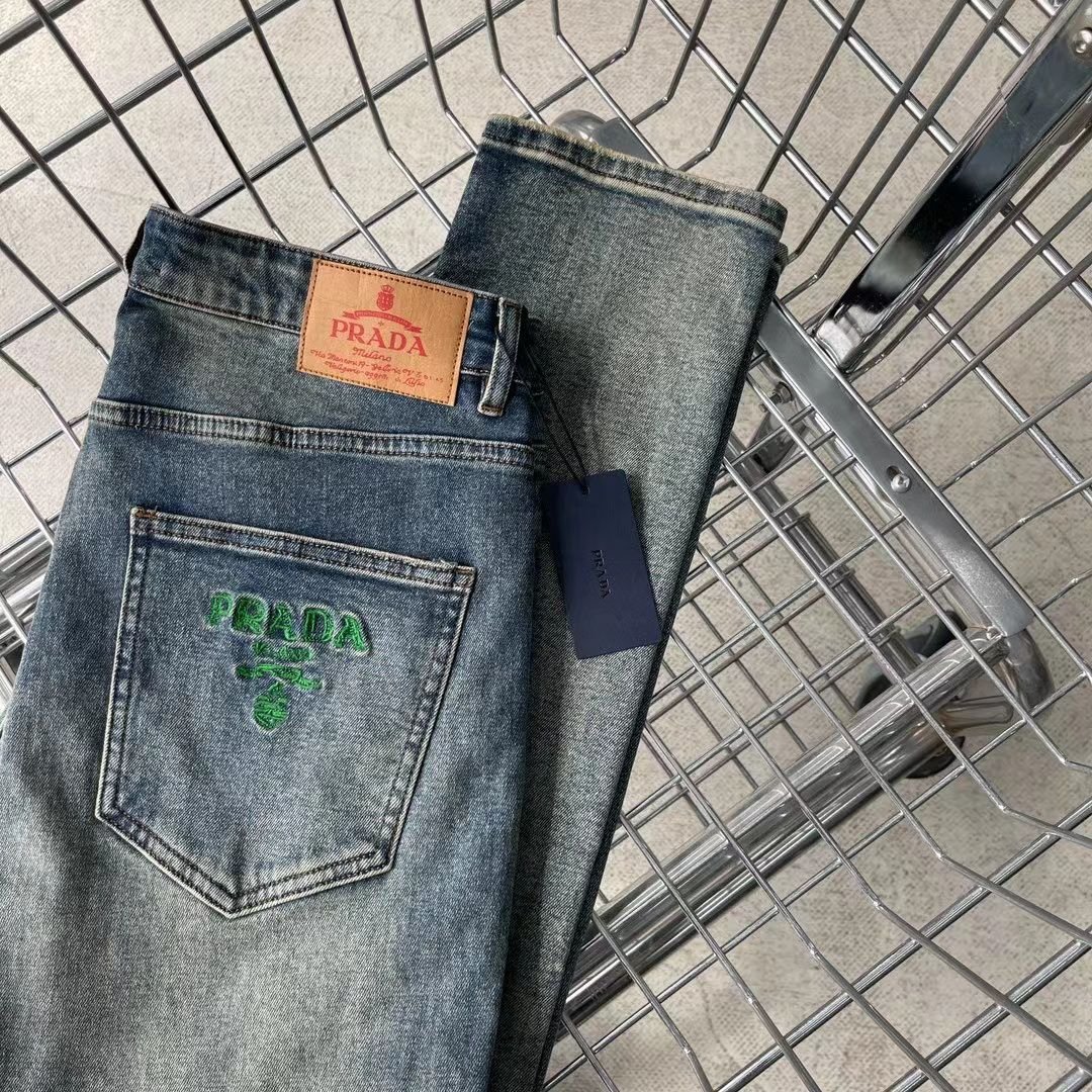 PRADA || Jean long en denim robuste délavé dégradé pour homme