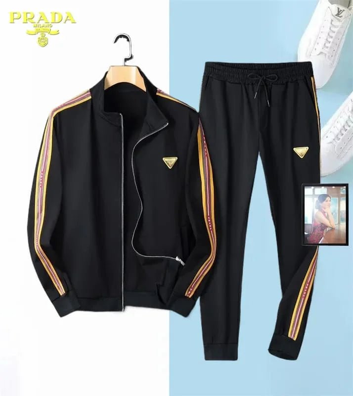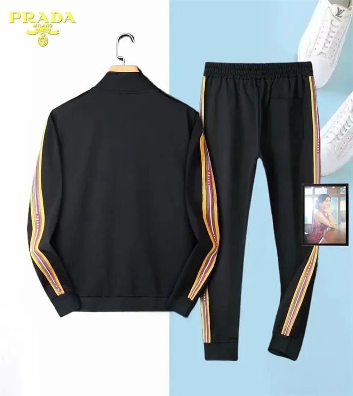 PRADA || SurvĂȘtement extensible coupe classique noir uni Ă  rayuresPRADA || SurvĂȘtement extensible coupe classique noir uni Ă  rayures