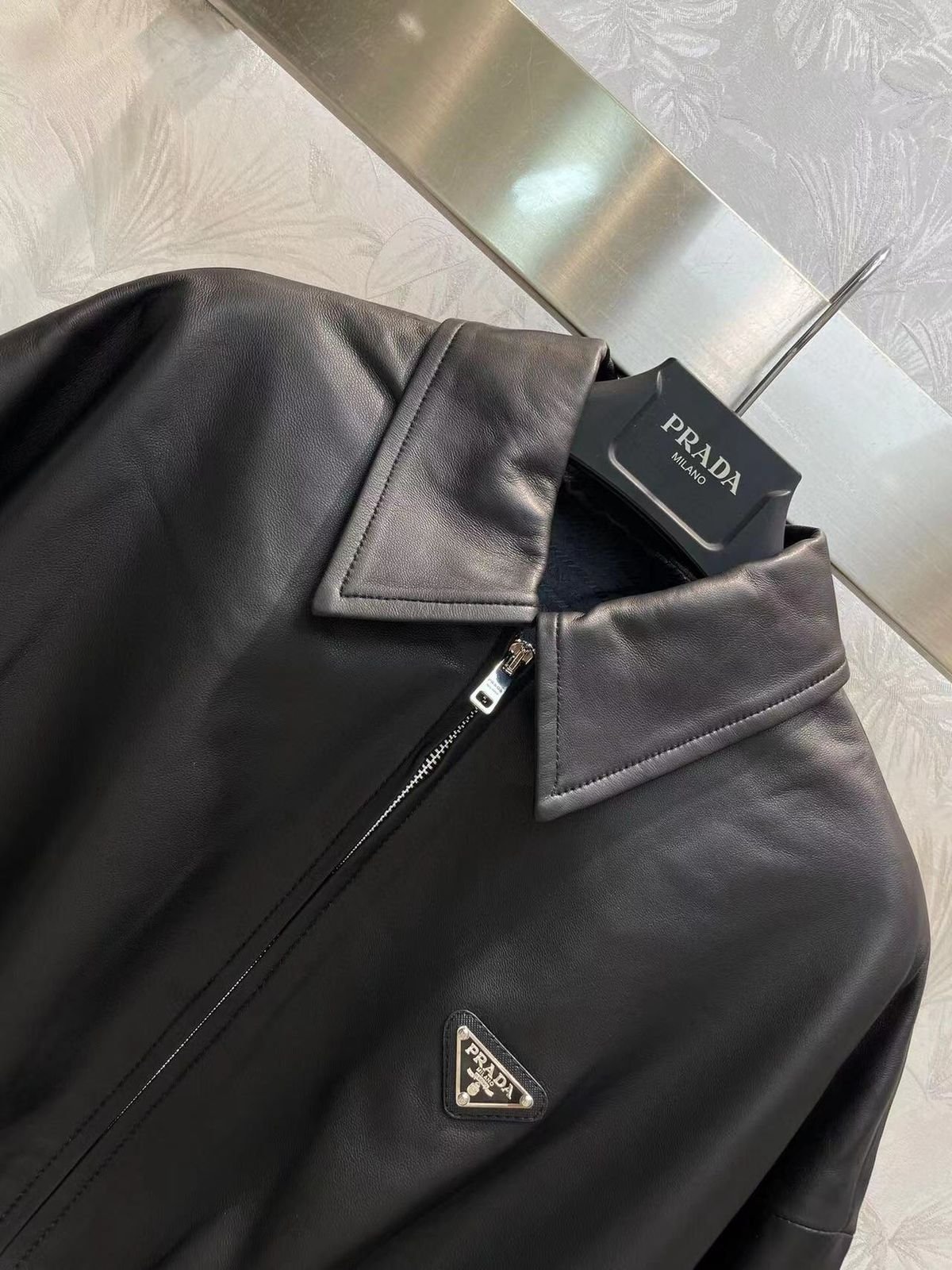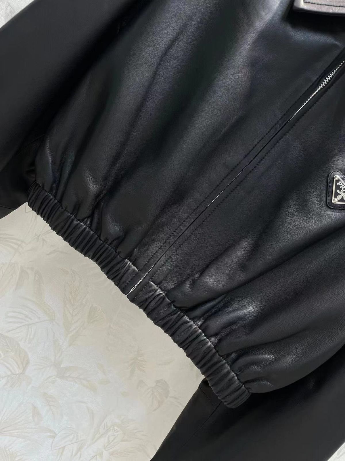 PRADA || Veste courte zippée en popeline pour femme / Noir