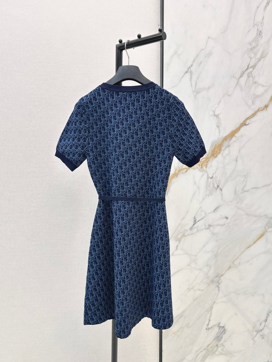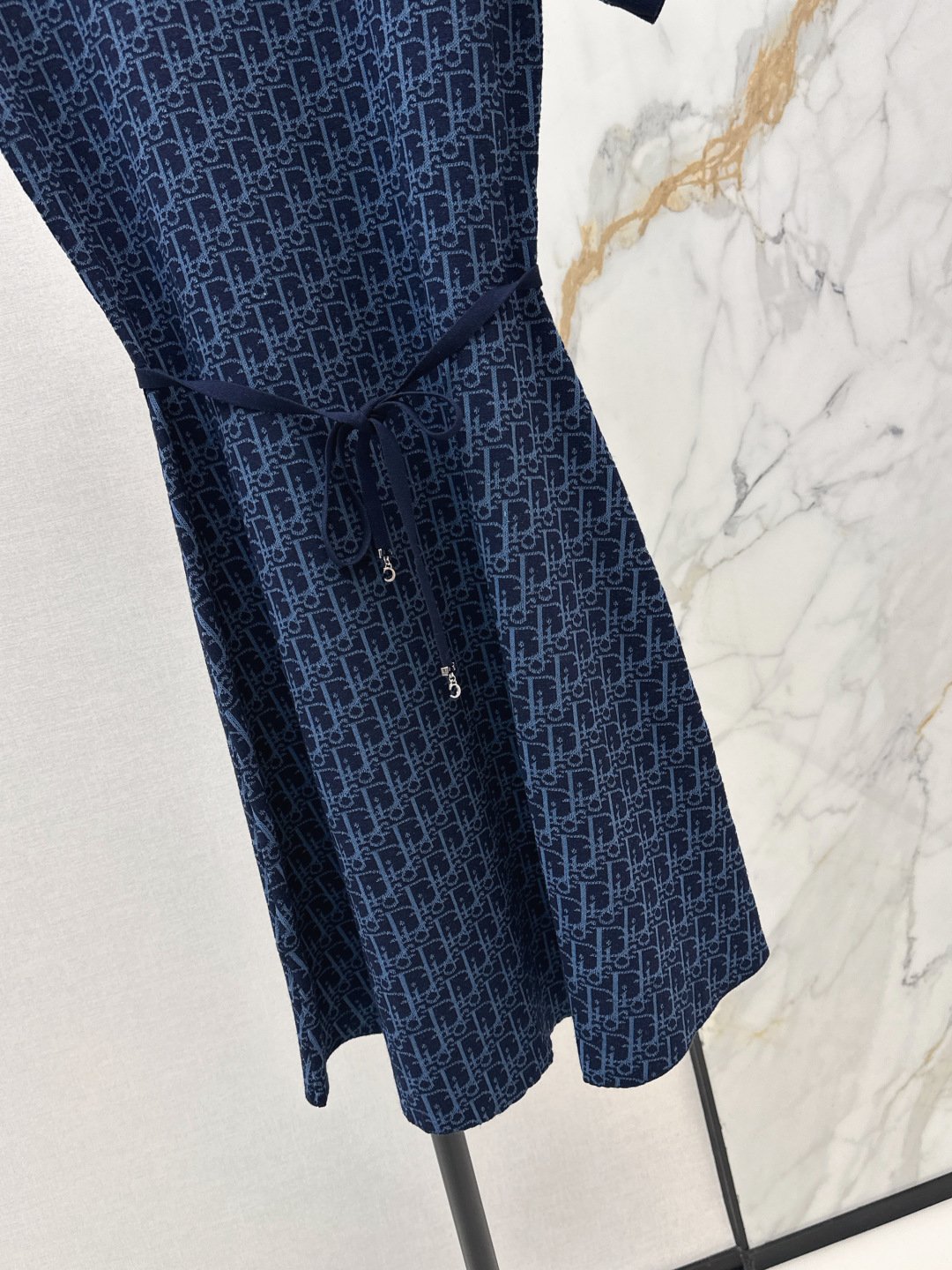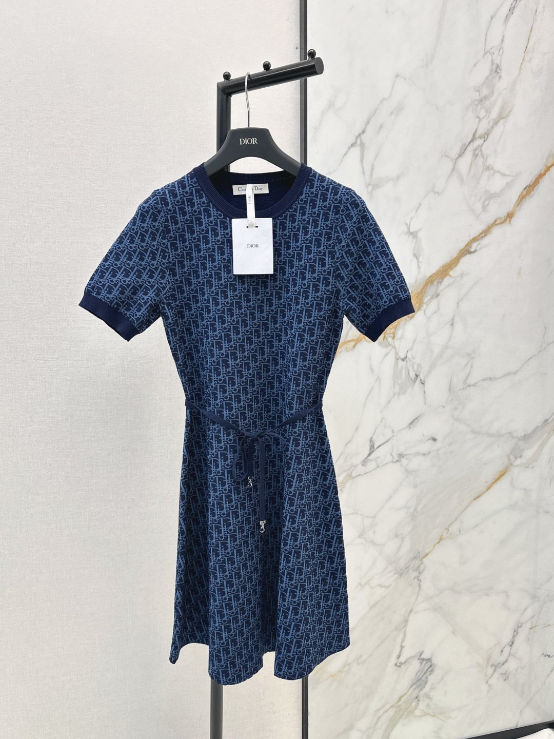 Cette robe Dior allie confort et élégance avec son iconique motif Dior Oblique décliné en maille jacquard technique. Sa silhouette trapèze est structurée par une ceinture coordonnée qui souligne délicatement la taille. Une pièce intemporelle et moderne, idéale pour une allure chic au quotidien, portée avec des sneakers pour un look urbain ou des bottines pour plus de sophistication.