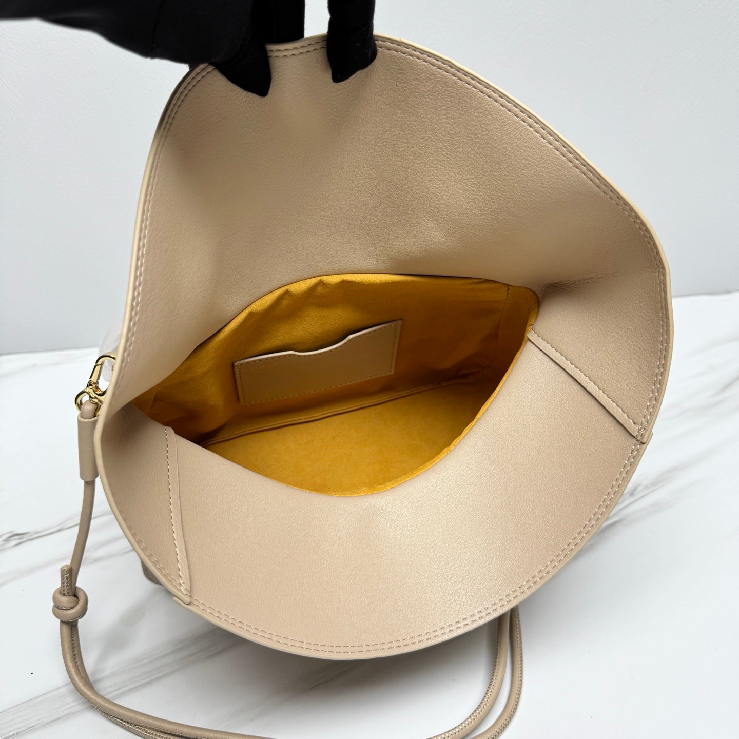 L’intérieur est doublé d’un suède doux couleur miel avec une poche plaquée pratique pour vos essentiels. Sa bandoulière ajustable permet un port à l’épaule ou croisé selon vos envies.