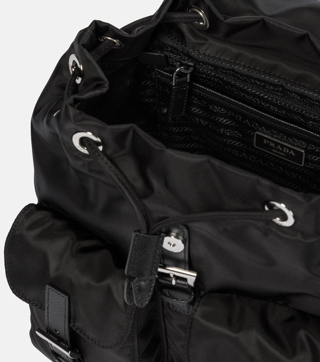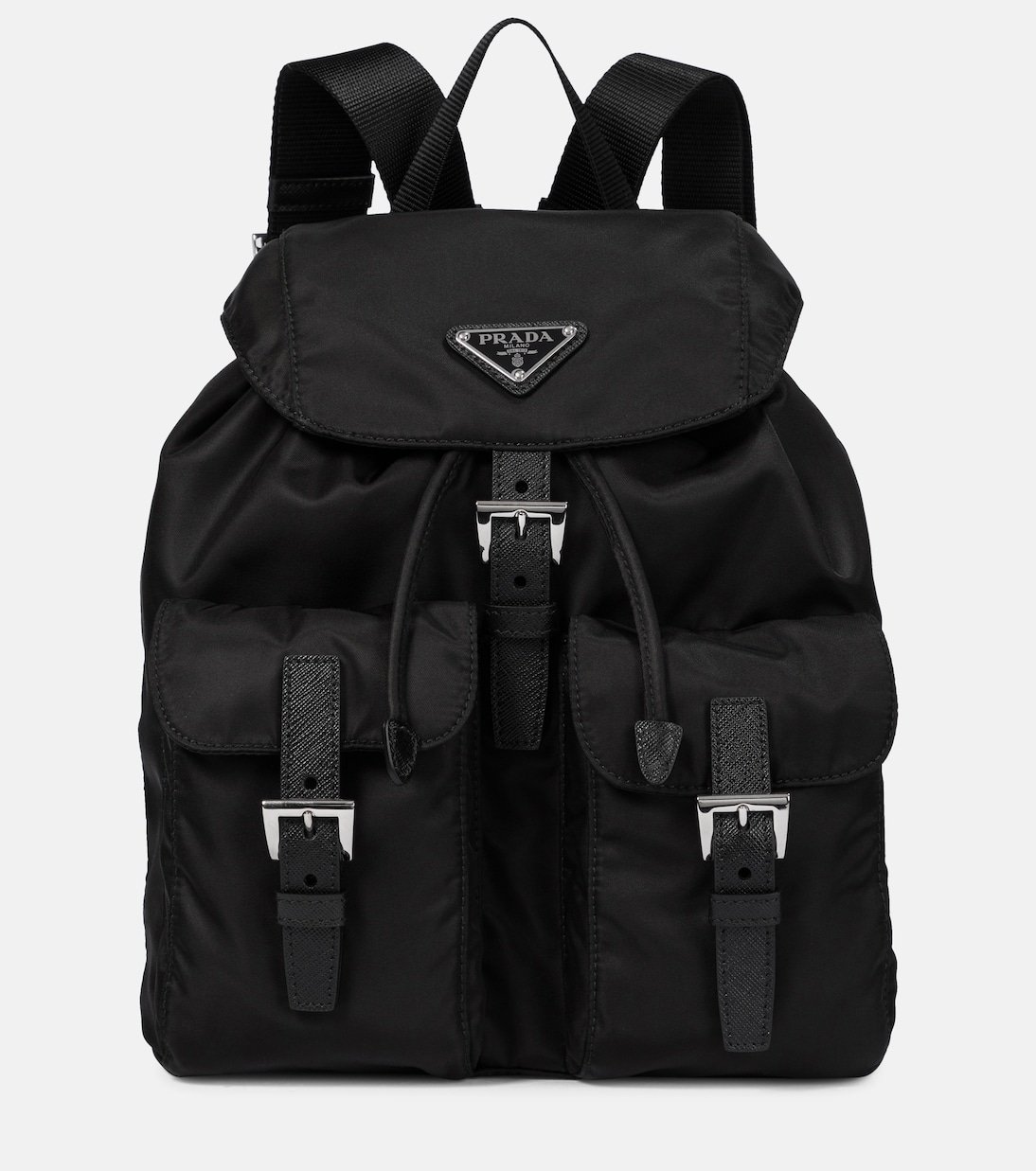 Adoptez une allure très Prada avec ce sac à dos en nylon, aussi tendance aujourd’hui que lors de son lancement au début des années 1990. Fabriqué en Italie, ce modèle trouve l’équilibre entre la forme et la fonction avec des poches multiples, des boucles de fermeture et des bretelles réglables. Notez sa plaque à logo et ses détails en cuir saffiano.