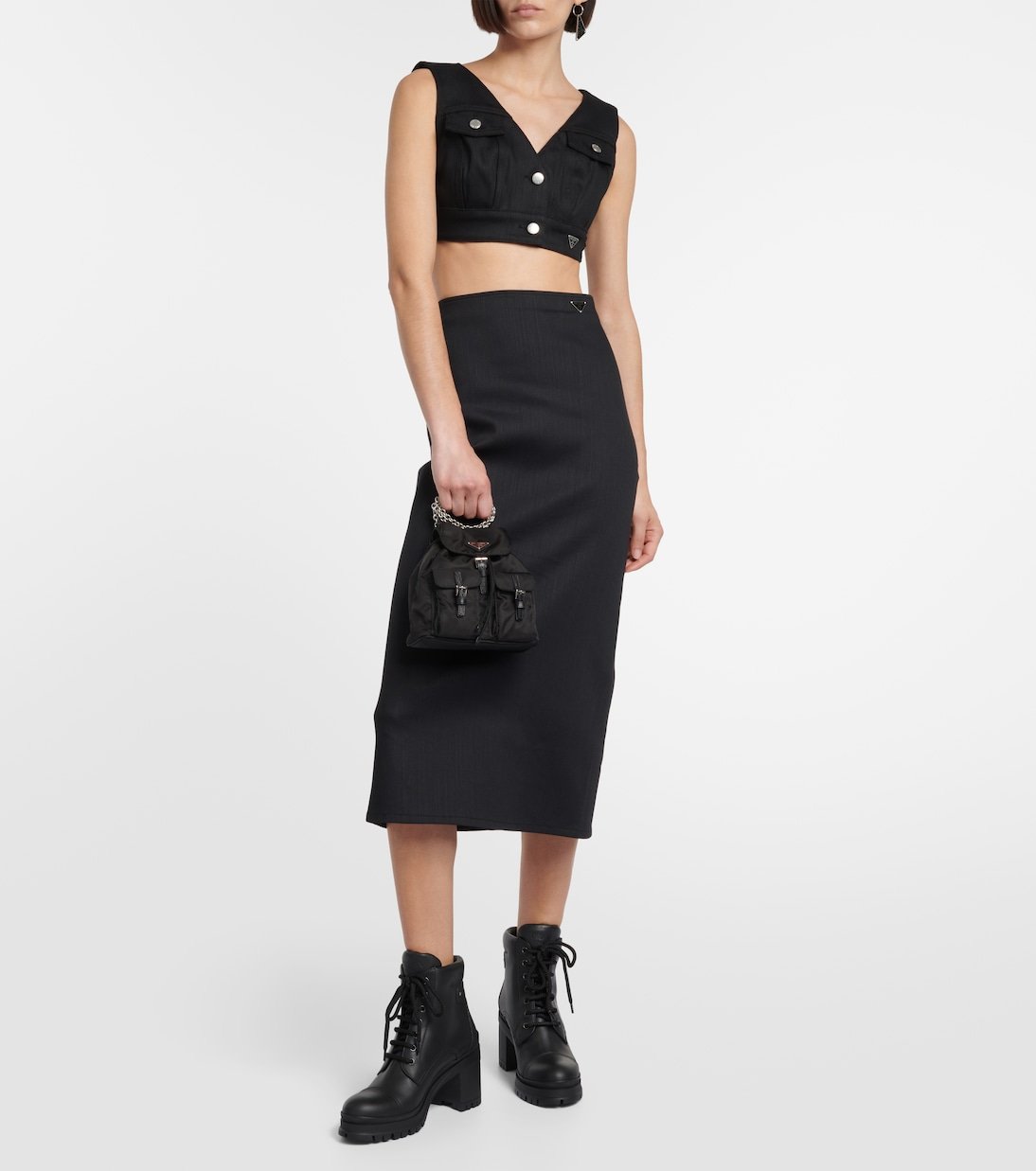 Ce mini sac à dos en nylon noir de Prada incarne la tendance des années 90 qui continue de faire rage. Cet accessoire se ferme par un cordon sur le dessus et présente des poches à boucles ainsi que des finitions en cuir. Orné d’une plaque siglée, il pourra être porté à l’épaule, à la main ou au dos grâce à sa longue bandoulière chaîne modulable.