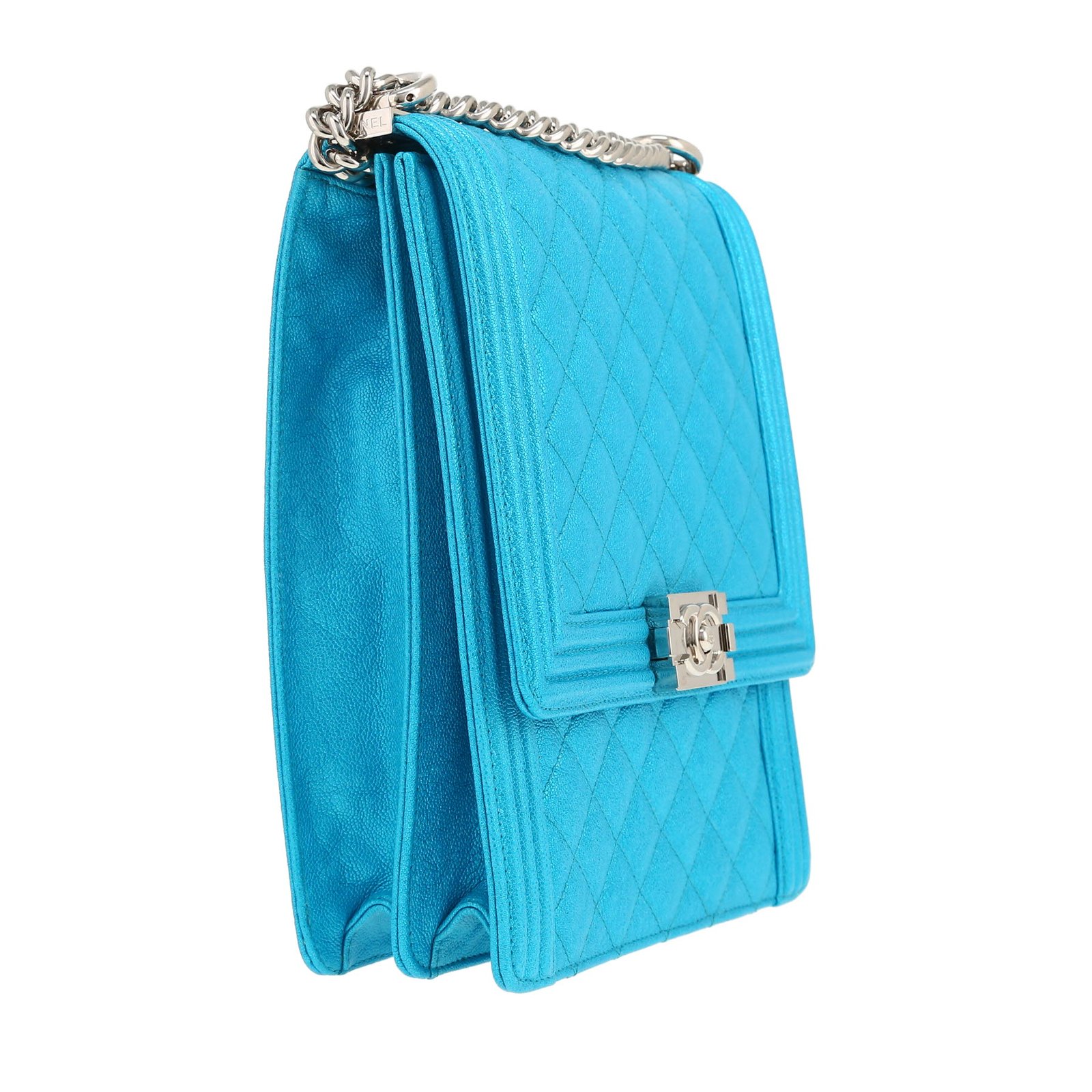 Sac de luxe Sac bandoulière Chanel Boy en cuir matelassé bleu