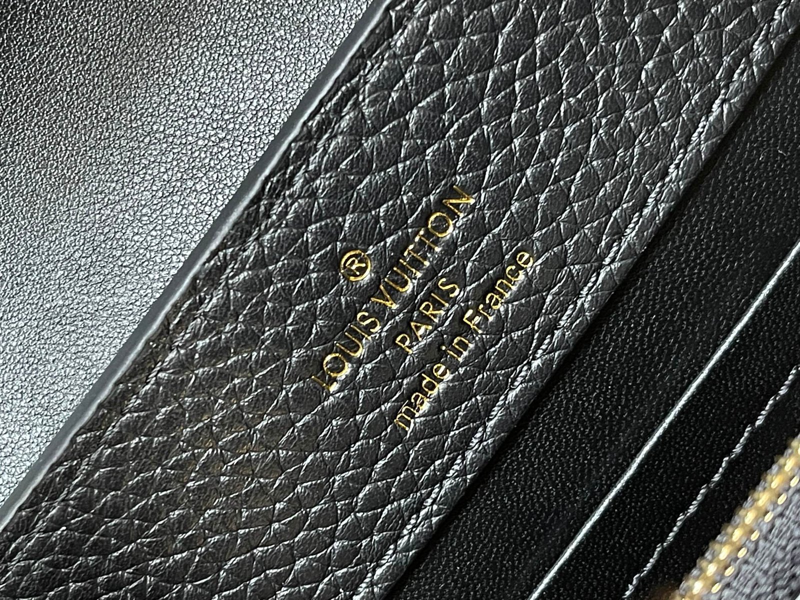 - Intérieur organisé avec des espaces pour cartes, téléphone et petits objets
