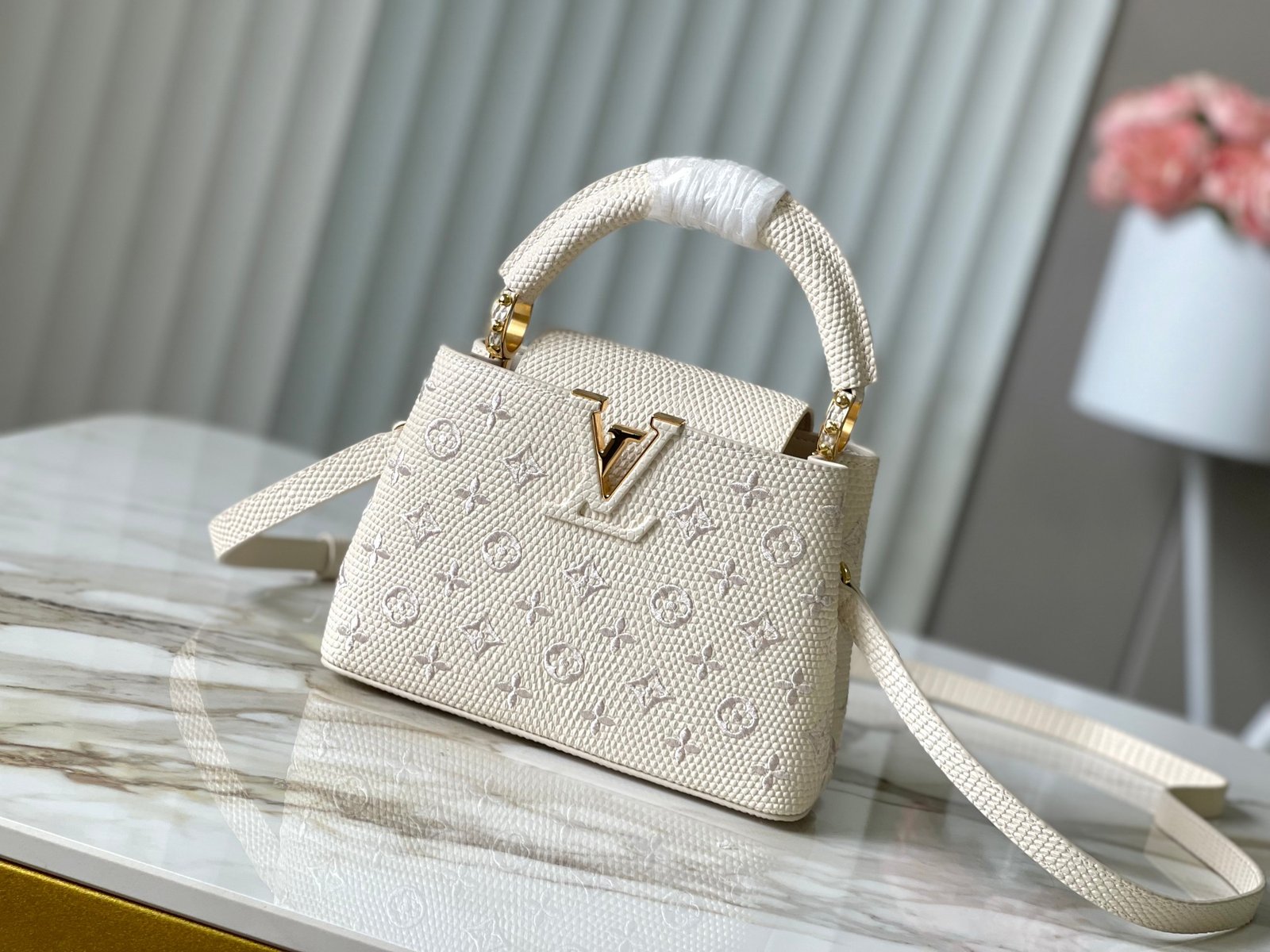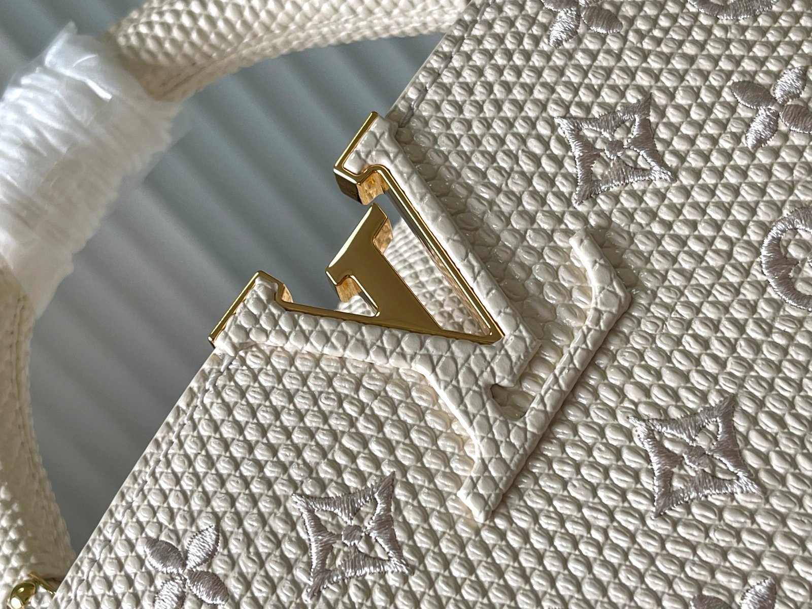 Ce sac Capucines Mini offre une combinaison parfaite de style et de praticité. Facile à porter à la main ou à l’épaule, il vous accompagne avec élégance tout au long de la journée ou de la soirée. Son design intemporel et ses finitions soignées en font un investissement mode durable, idéal pour enrichir votre collection d’accessoires de luxe.