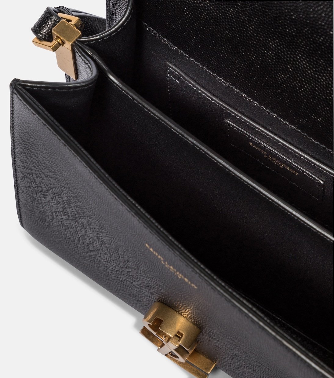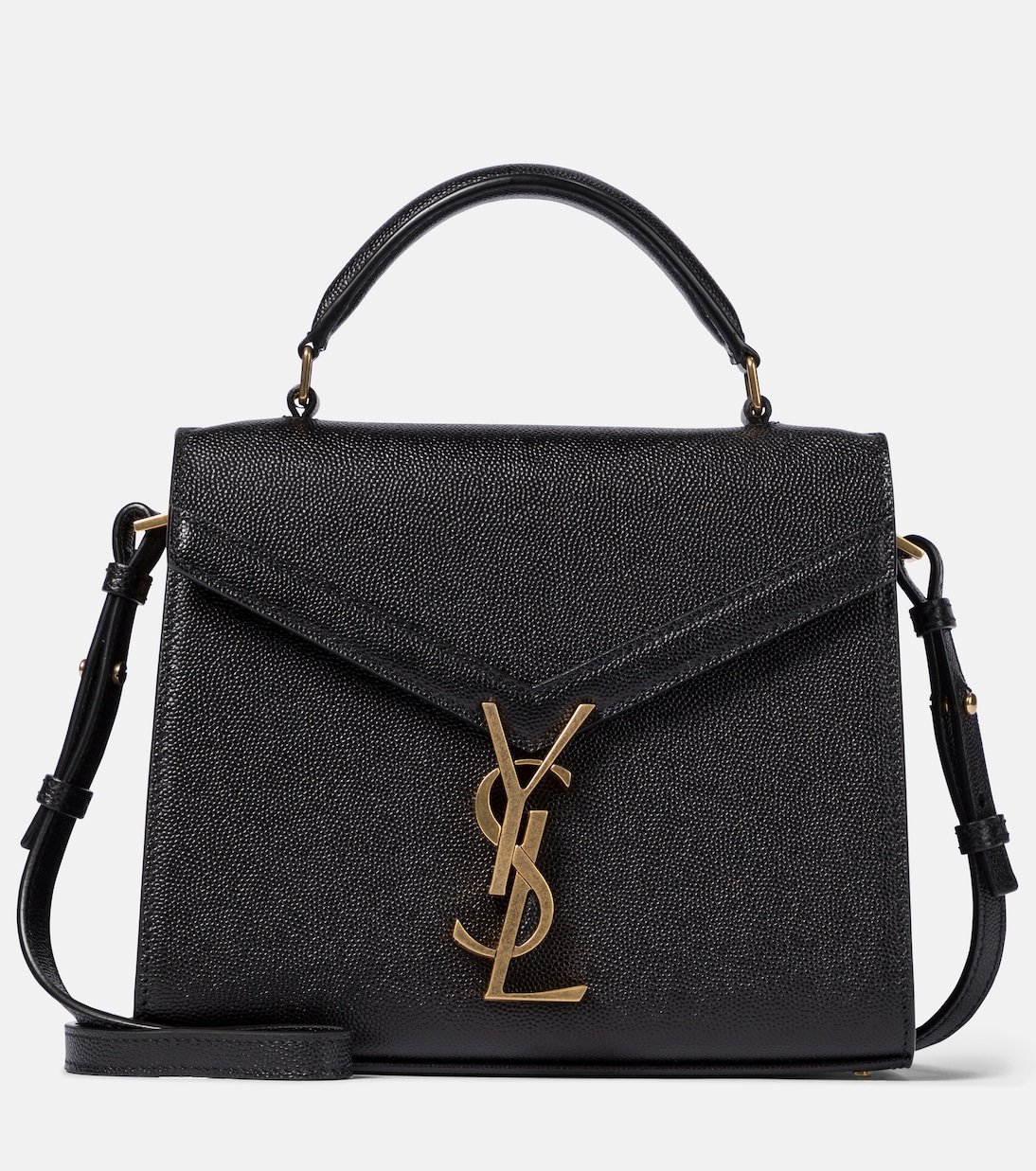 Avec sa silhouette affirmée et ses pièces en métal monogrammées, le sac Cassandra Mini capture parfaitement l’esthétique impeccable de Saint Laurent. Confectionné en cuir de veau noir classique, il est doté de deux compartiments et d’un emplacement à cartes pour une organisation facile.