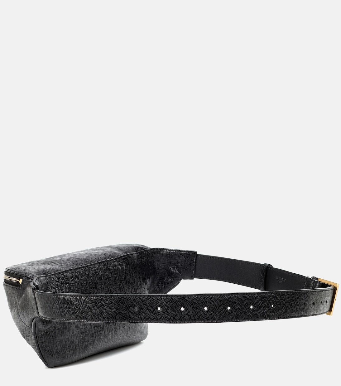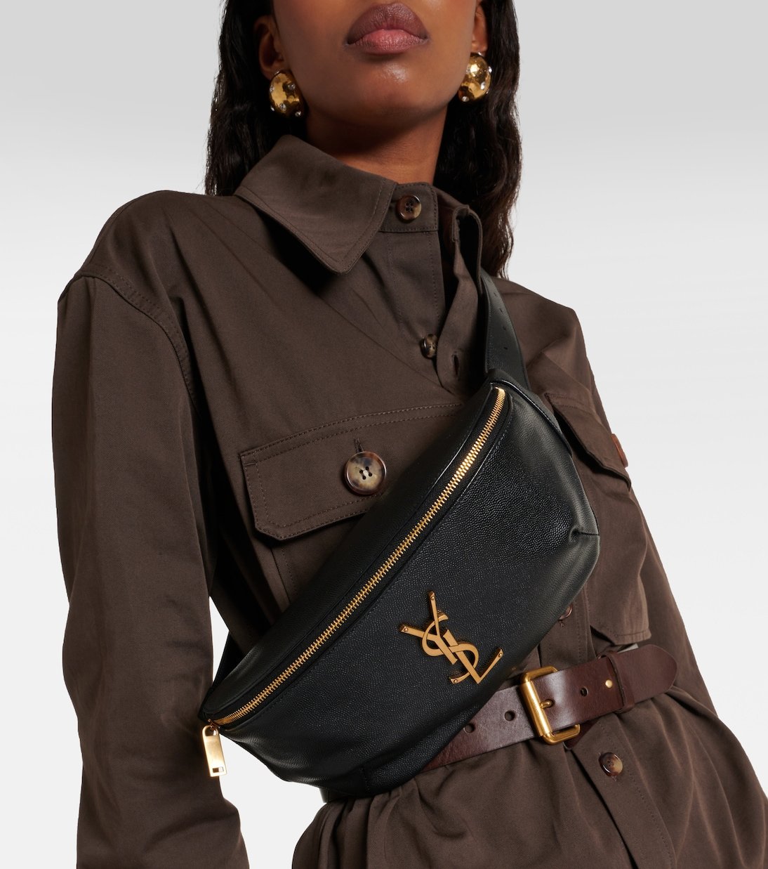 La tendance du sac banane est toujours au sommet, en témoigne ce modèle réalisé en Italie en cuir noir et signé de la maison Saint Laurent. Zippé et naturellement paré de la plaque YSL, ici en doré, il cintrera cardigans, vestes et robes, tout en vous permettant de garder les mains libres.
