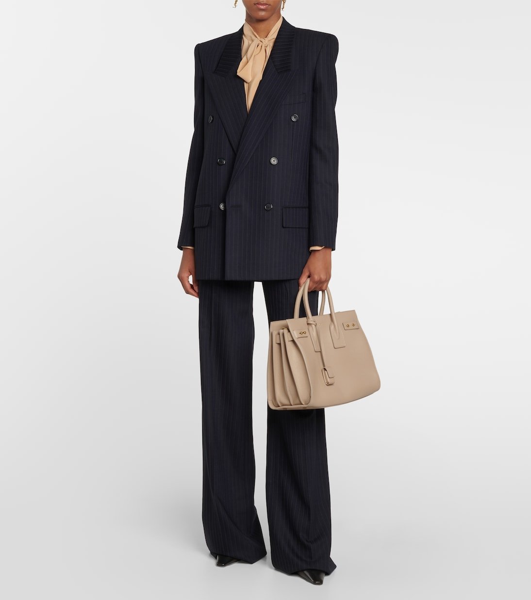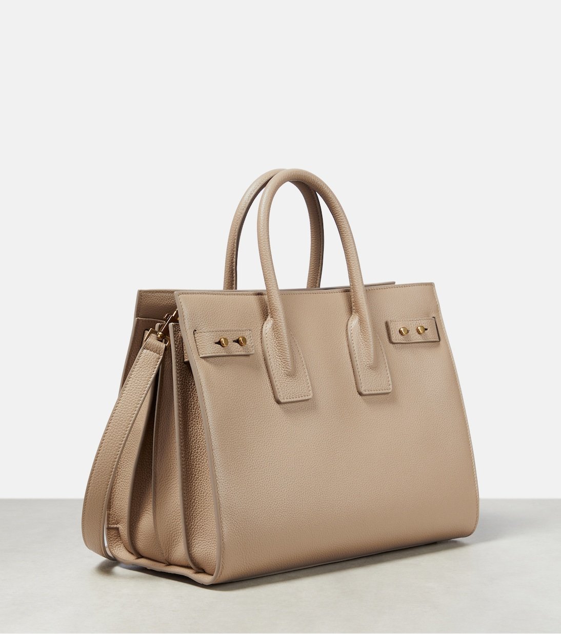 Comptant parmi les sacs emblématiques de Saint Laurent, le Sac De Jour Small affiche une silhouette structurée et intemporelle en cuir beige foncé. Il s’accompagne d’une anse supérieure et d’une bandoulière réglable pour garder les mains libres.
