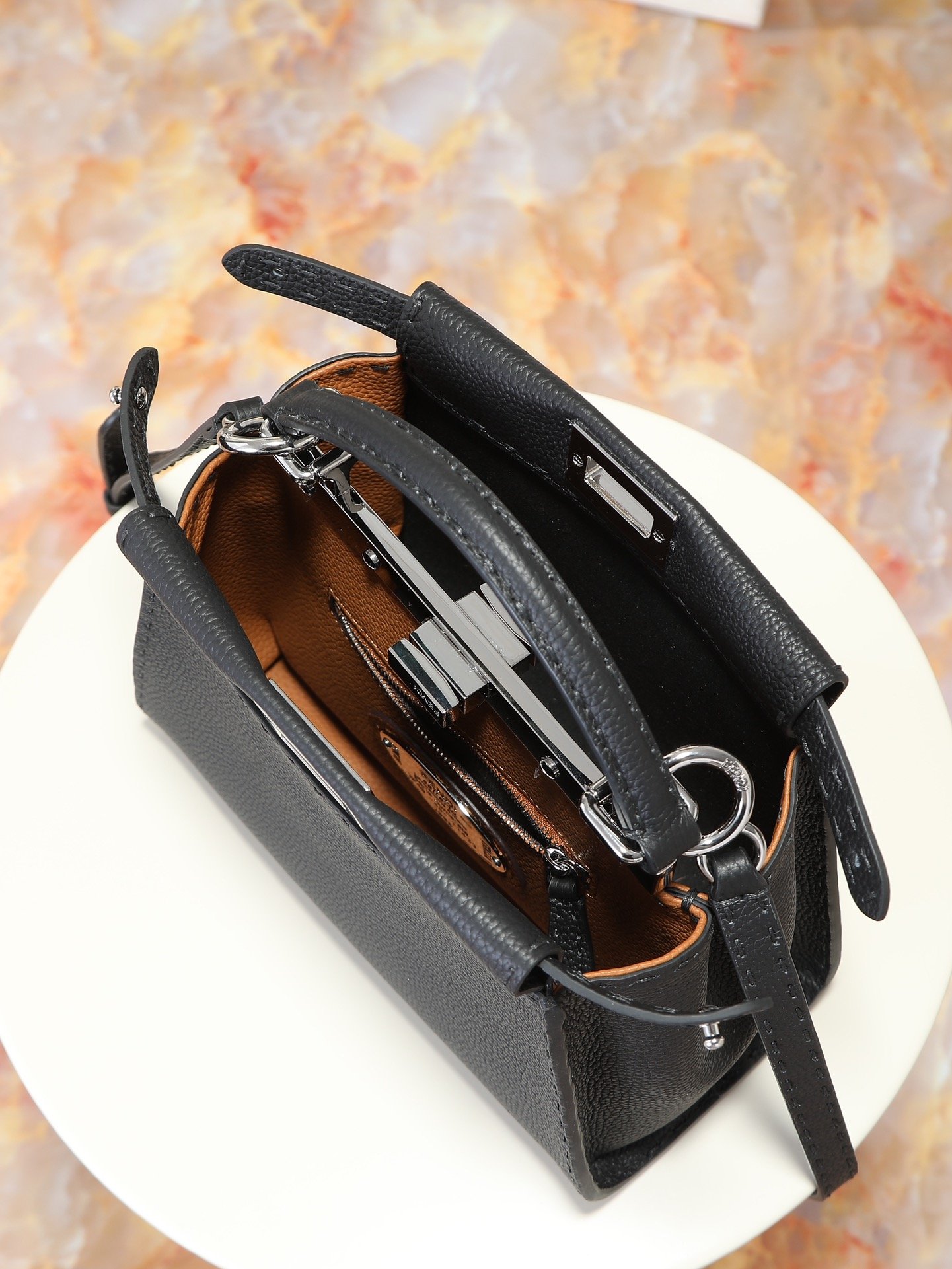 Ce sac Fendi Peekaboo Mini est votre allié pour affirmer un style élégant tout en restant pratique. Léger et facile à porter à la main ou à l’épaule, il sublime votre look tout en protégeant vos affaires. Son cuir de qualité assure une longévité exceptionnelle, avec une patine qui se bonifie avec le temps, reflétant votre personnalité.