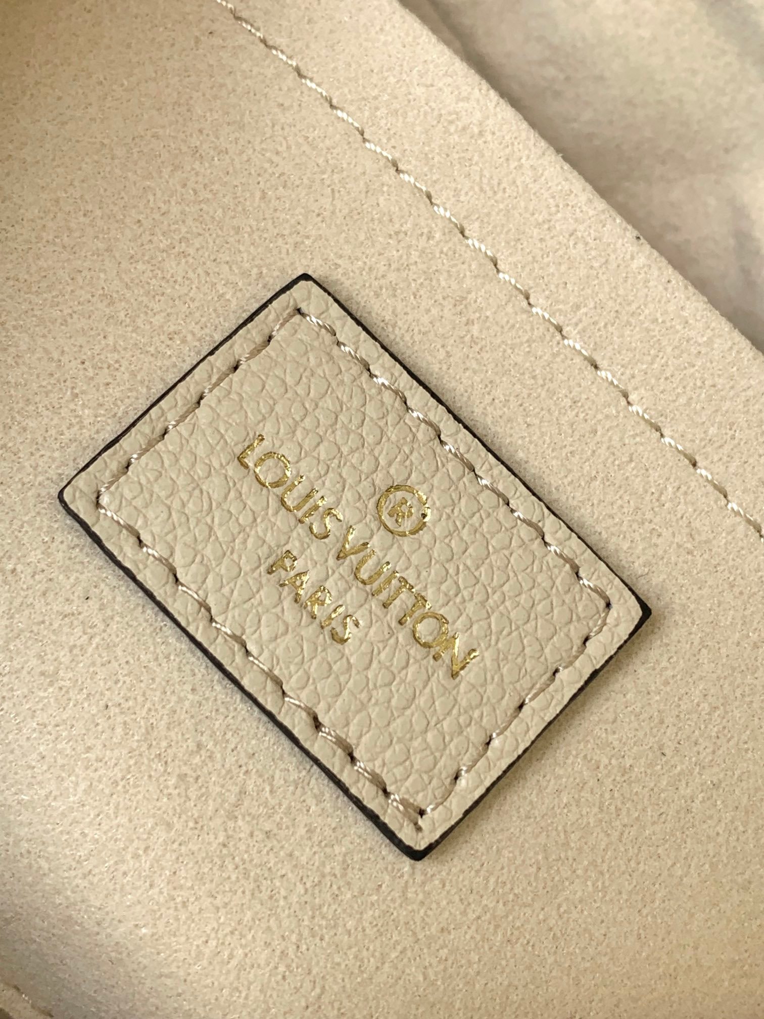 Sac Louis Vuitton Bagatelle NM en cuir Monogram Empreinte Crème