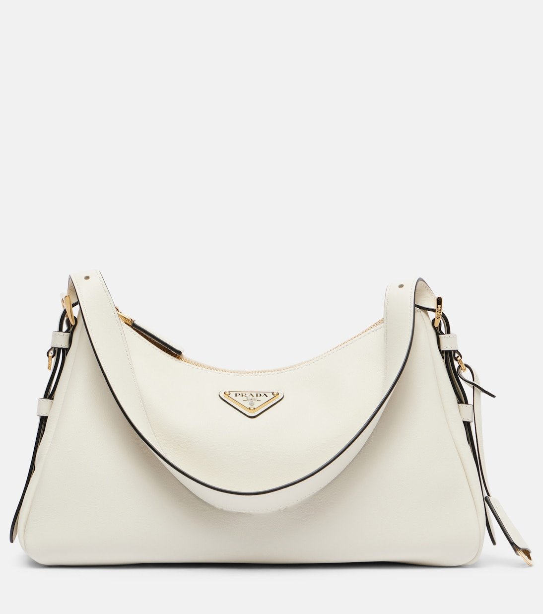 Prada revisite l’héritage italien dans une direction résolument moderne avec une approche épurée et avant-gardiste. Le sac Prada Aimée Medium est réalisé en cuir dans une silhouette légèrement structurée rehaussée du logo métallique signature.