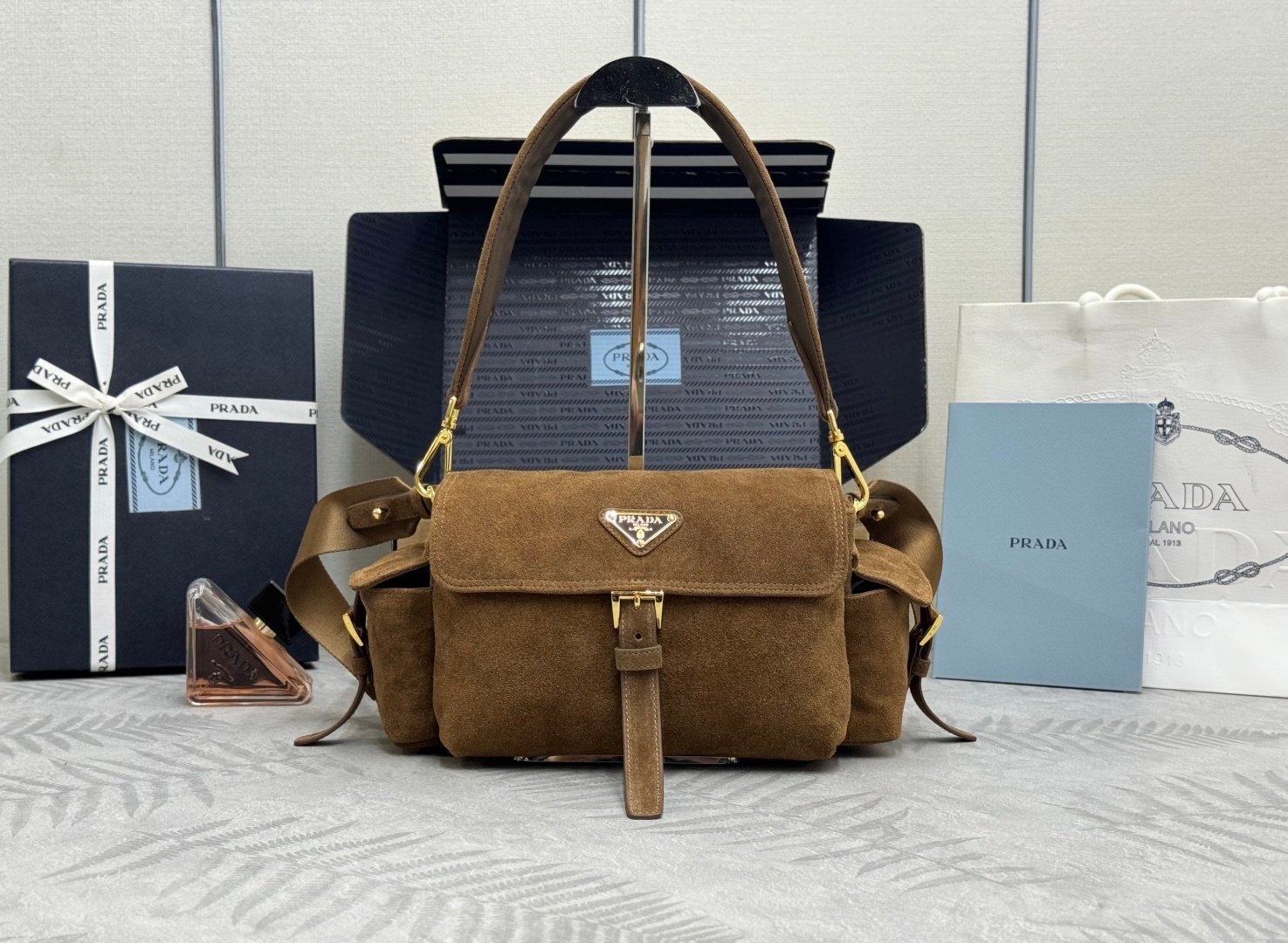 Sac Prada en daim avec rabat – Modèle iconique Milano à bandoulière