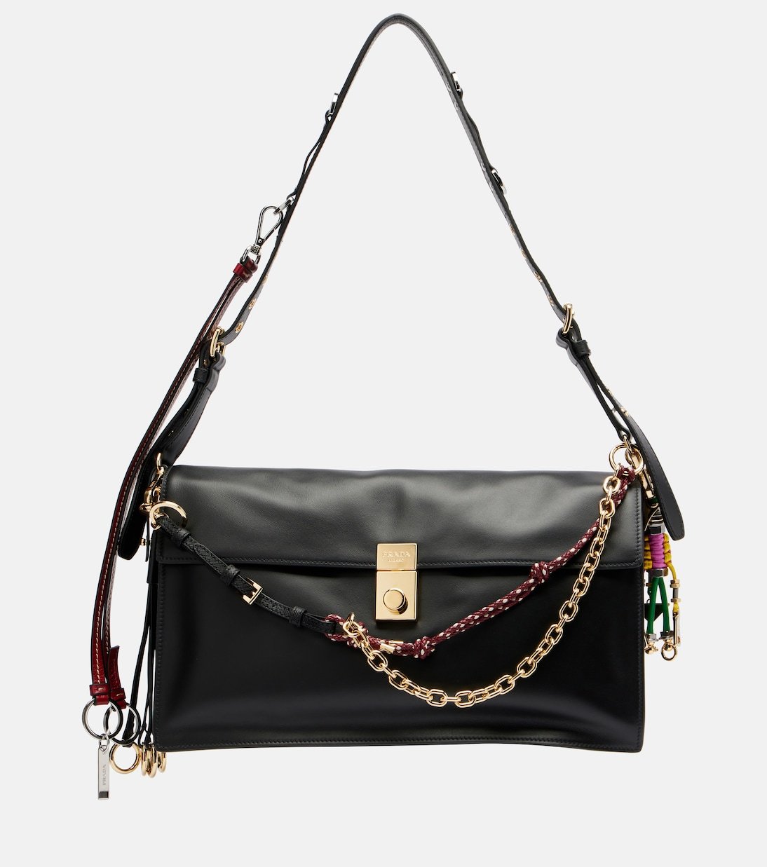 Le sac Soft Sound signé Prada est réalisé en cuir de veau souple dans une silhouette légèrement structurée. Doté de deux compartiments et d’une bandoulière réglable, ce modèle est orné de pendentifs colorés pour une touche de fantaisie.