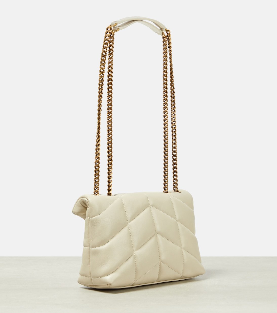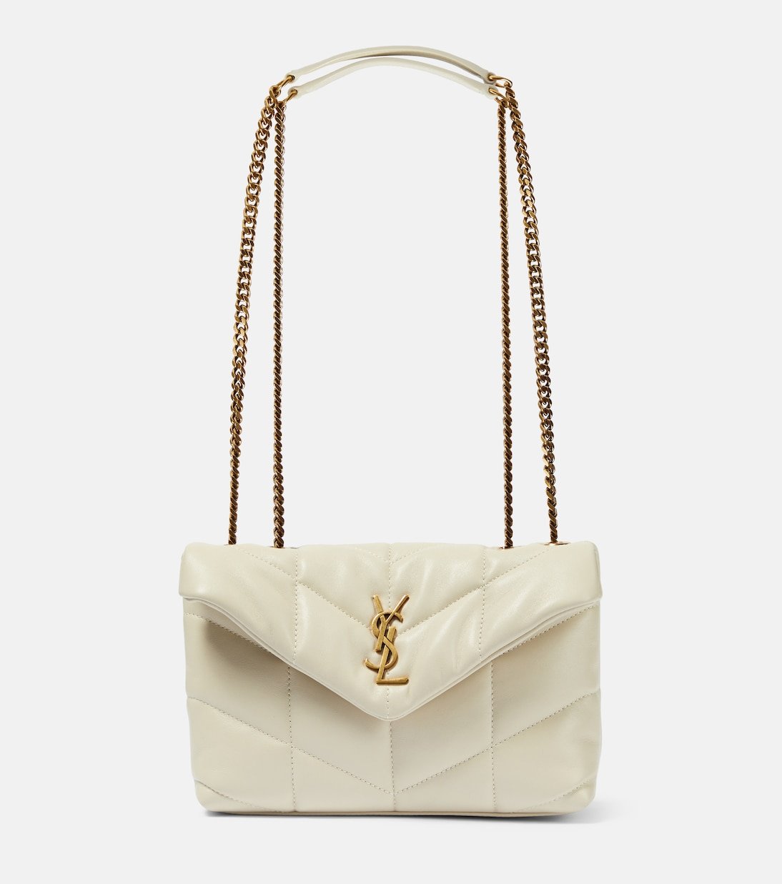 Nouvelle version du Loulou, le sac Puffer Toy de Saint Laurent est doté d’un extérieur légèrement rembourré et d’un matelassage à chevrons signature. Il est réalisé en Italie à partir de cuir d’agneau et arbore le monogramme YSL emblématique du label.