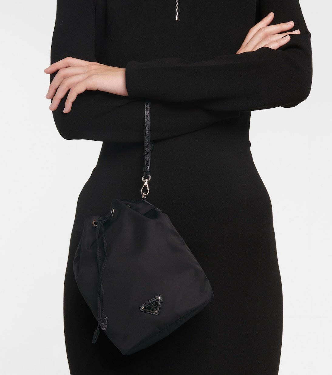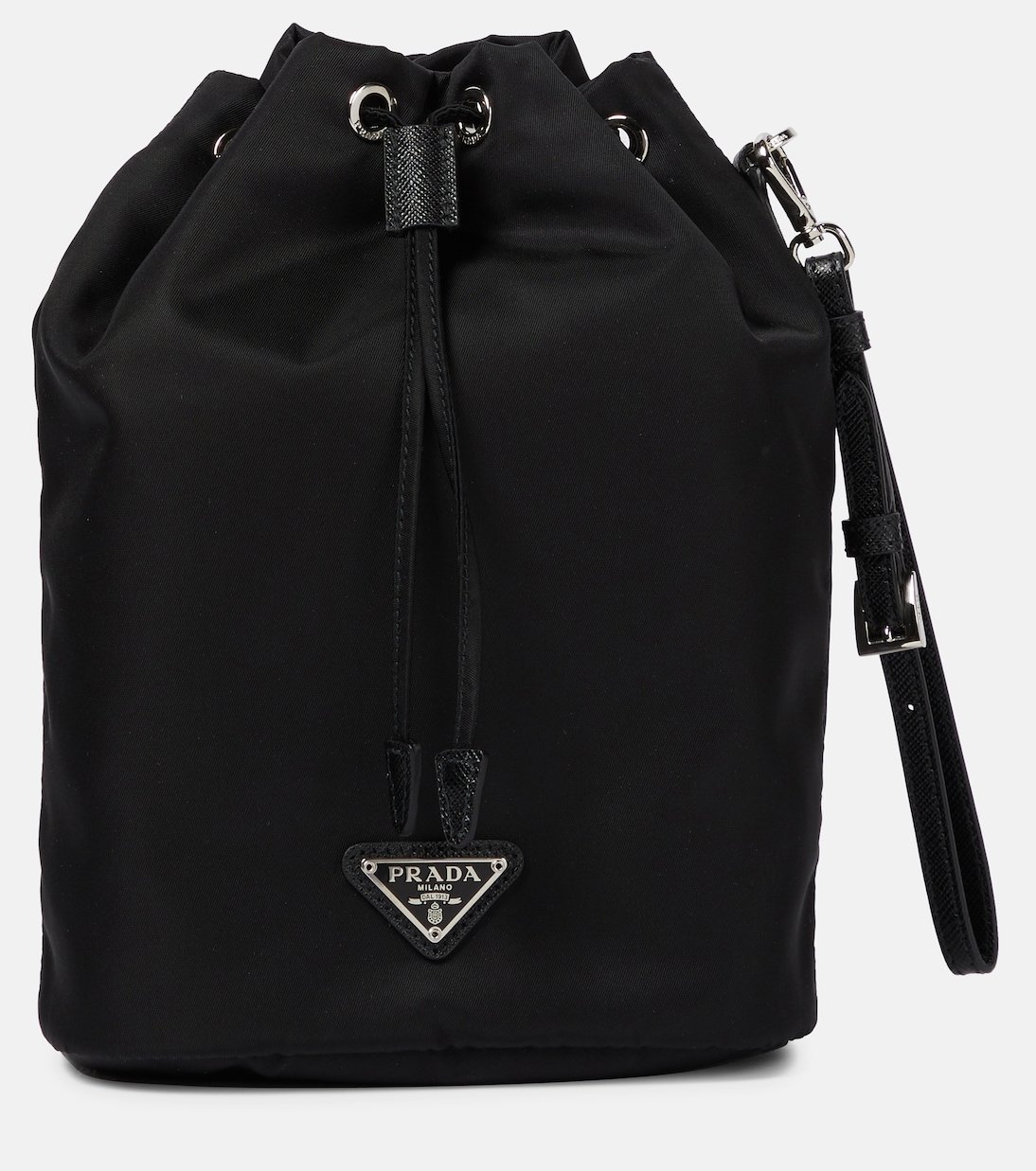 Connu pour avoir popularisé le nylon et en avoir fait une étoffe de luxe, Prada offre une version miniature du sac seau avec ce modèle. Les finitions en cuir saffiano, y compris la dragonne amovible, font référence à l’histoire de la maison, qui a toujours été réputée pour ses créations en cuir.