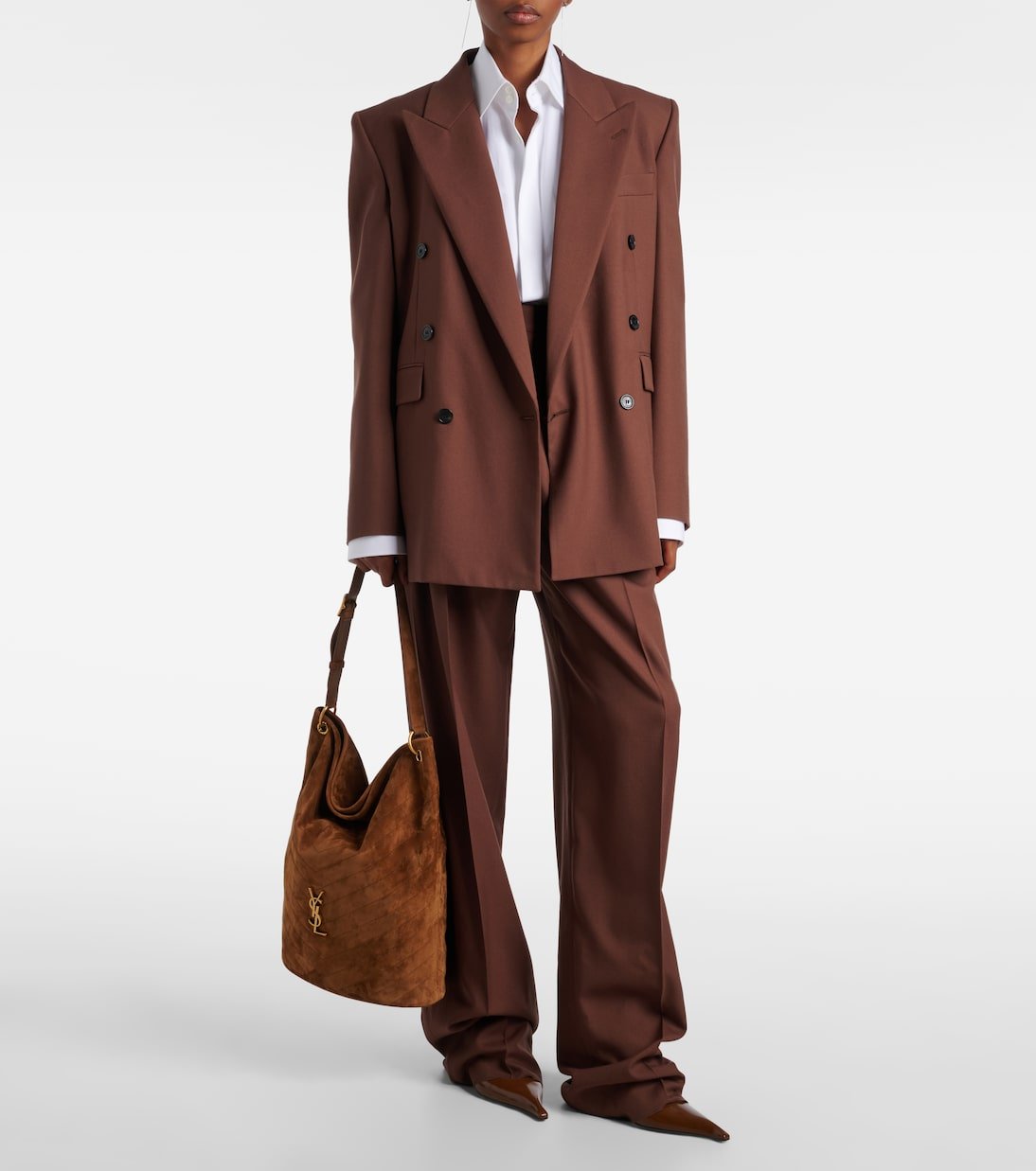 Le sac seau Niki de Saint Laurent incarne l’esthétique parisienne sophistiquée de la maison. Confectionné en Italie en daim souple, cet accessoire arbore le monogramme de la maison, une bandoulière réglable, une pochette amovible et des accents doré antique.
