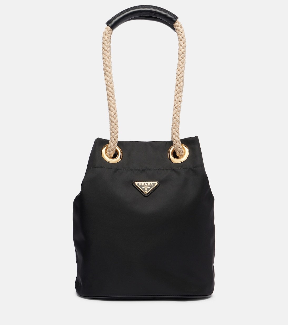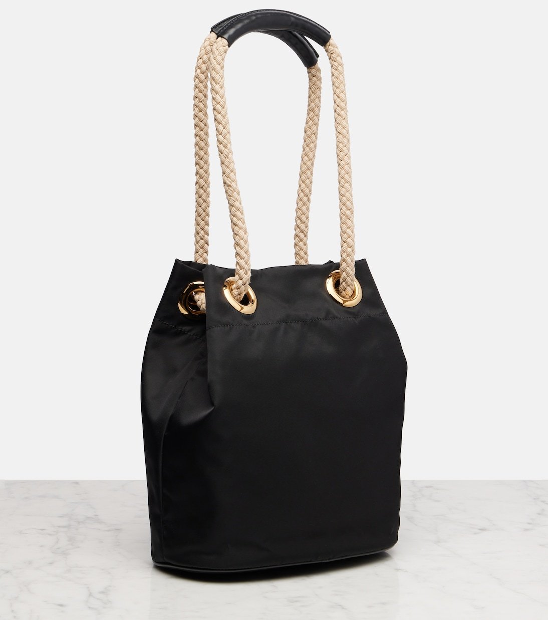Proposant une version plus durable d’un tissu signature, les produits Re-Nylon de Prada sont fabriqués à partir de déchets plastiques régénérés provenant de l’océan. Réalisé à partir du matériau signature du label, le sac seau Prada Mariner est doté de poignées tissées façon corde et de finitions métalliques dorées.