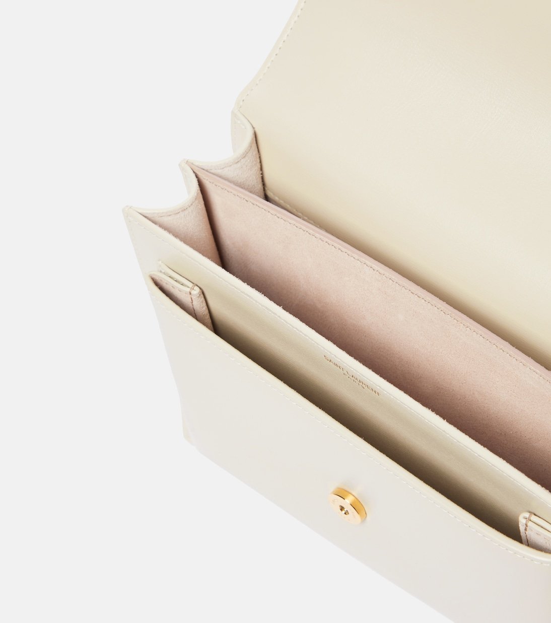 Agrémentez votre garde-robe d’un accessoire de légende avec le sac Sunset Medium de Saint Laurent. Confectionné en Italie en cuir de veau lisse blanc, ce modèle structuré est rehaussé du monogramme signature YSL de la maison en métal doré.