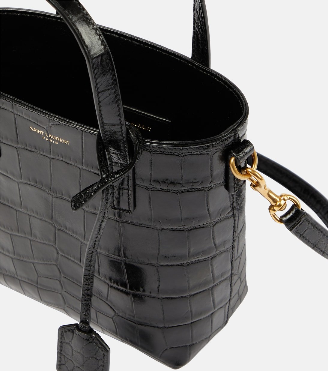 Le sac Toy Shopping N/S de Saint Laurent est confectionné en Italie à partir de cuir embossé façon croco. Idéal pour vous accompagner partout, il arbore un logo doré estampé à chaud et présente une bandoulière amovible.
