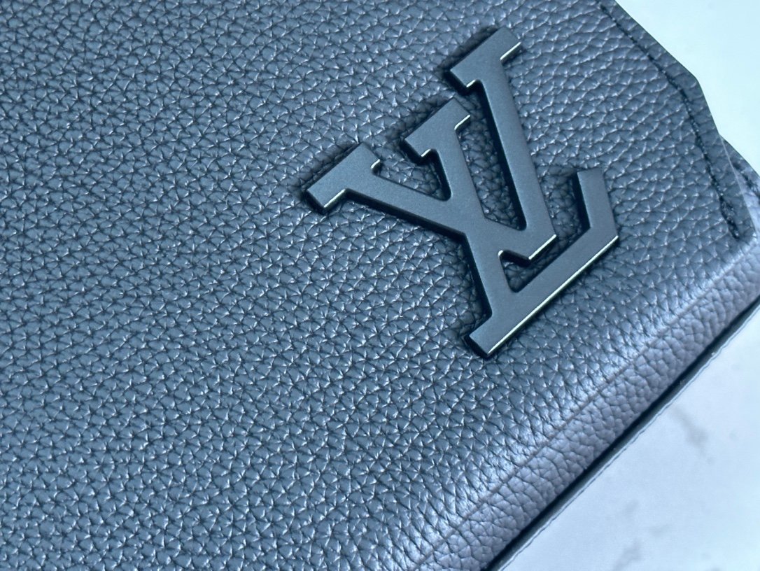 Sacoche Louis Vuitton en cuir grainé noir, finition élégante, bandoulière ajustable et poche zippée arrière. Style épuré et raffiné.