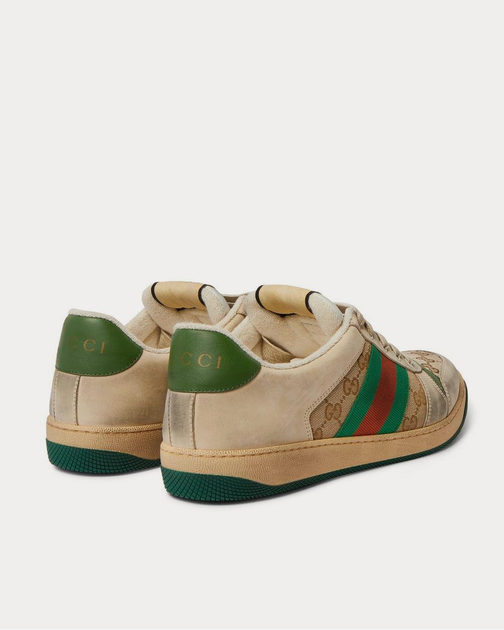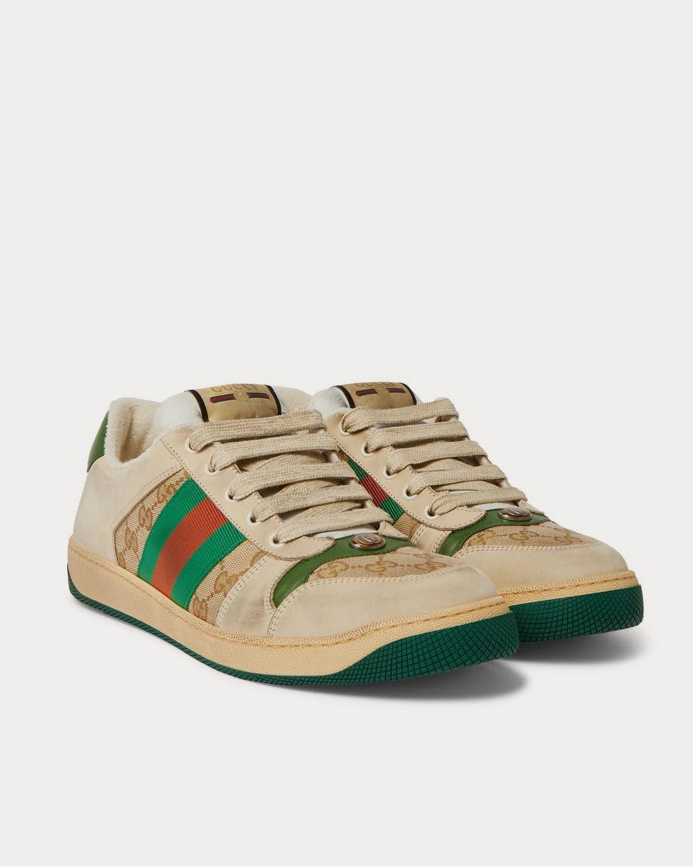Baskets basses marron en toile monogrammée et cuir vieilli à finitions en sangle Gucci Screener