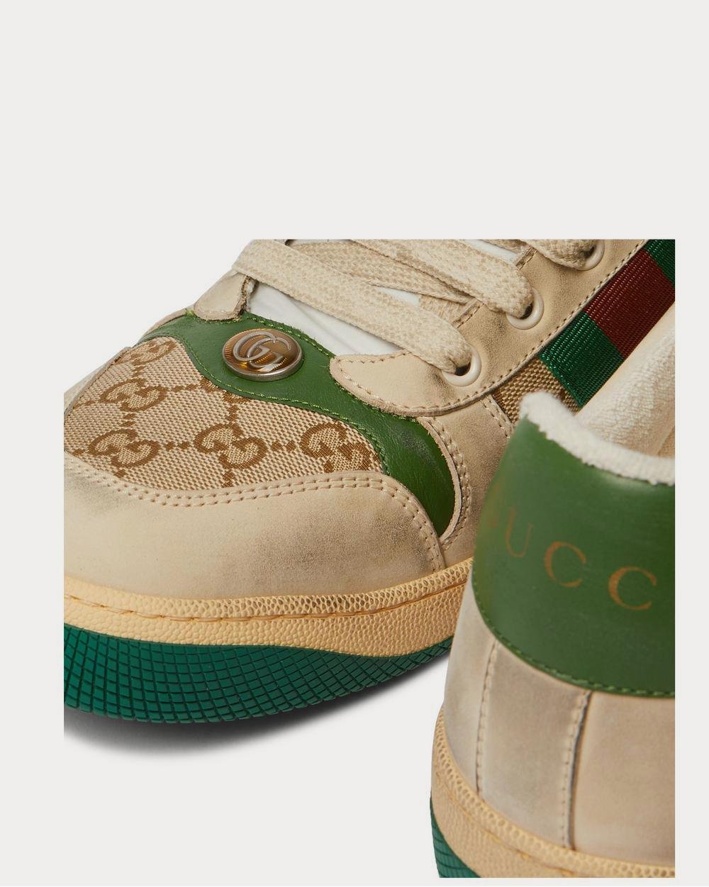Une grande partie de la collection Gucci s’inspire du sportswear vintage, comme ces baskets, qui s’inspirent des motifs d’usure de votre pièce préférée. Confectionnées en toile monogrammée et en cuir, elles s’inspirent du style des années 70 et arborent un effet vieilli authentique. Leurs semelles en caoutchouc antidérapantes sont estampillées de l’abeille, l’emblème de la maison.