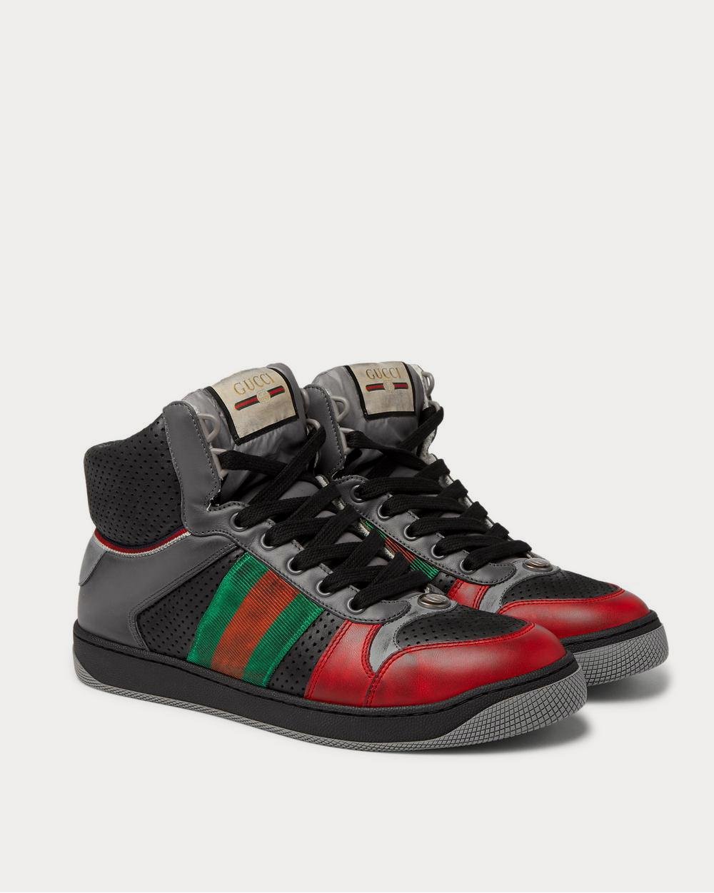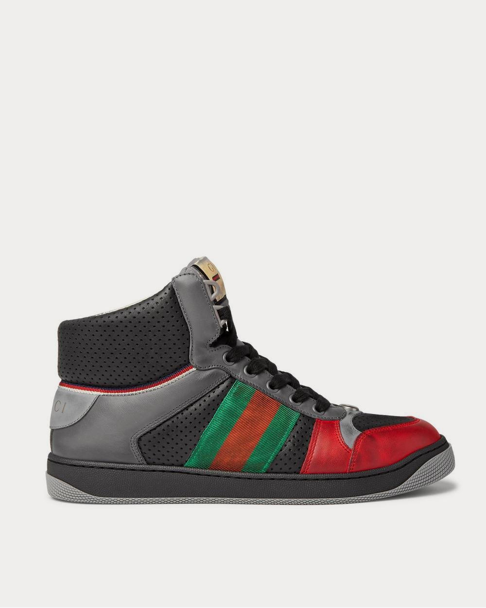 Baskets montantes noires en cuir vieilli à finitions en toile Gucci Screener