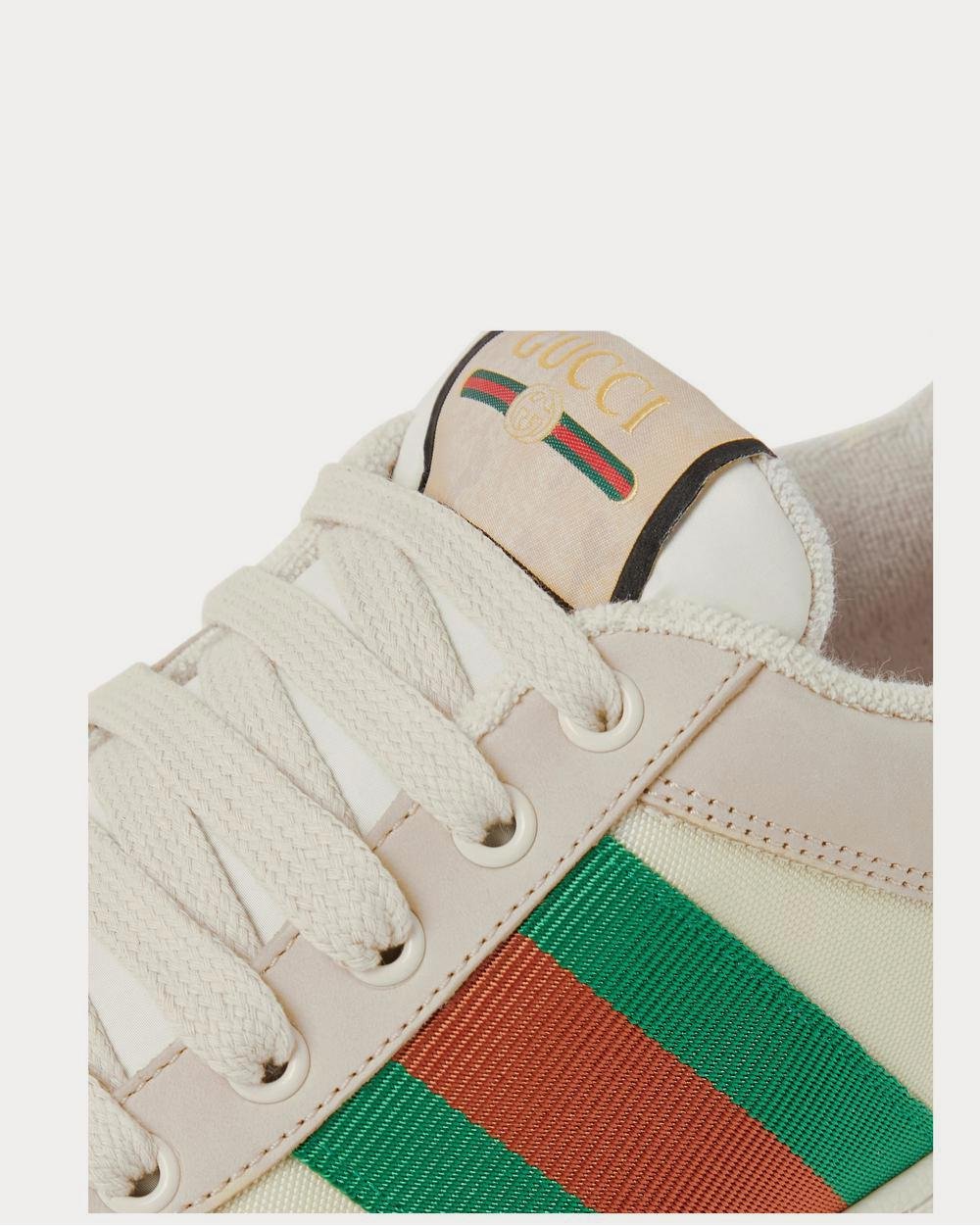 Baskets basses beiges en nubuck, maille et cuir à finitions en toile Gucci Screener