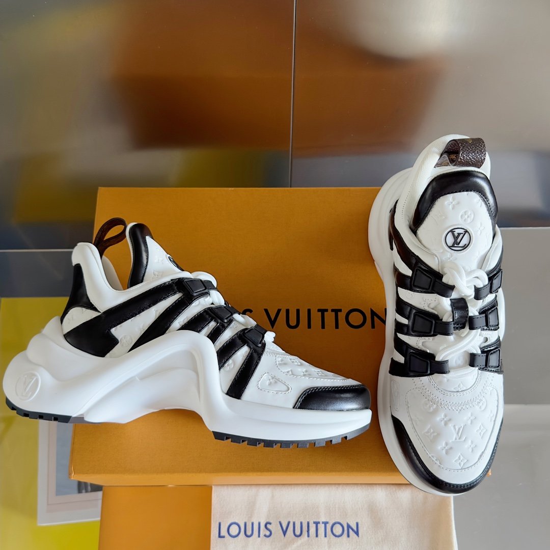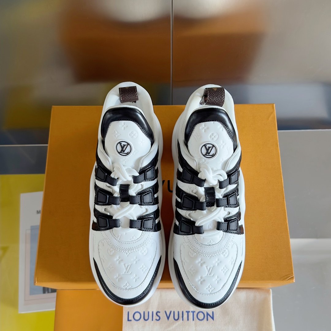 Fabriquée avec des matériaux de haute qualité, cette chaussure est conçue pour durer tout en conservant son aspect sophistiqué. Pour préserver sa beauté, il est recommandé de la nettoyer avec un chiffon doux et d’éviter l’exposition prolongée à l’humidité. La sneaker Louis Vuitton LV Archlight incarne l’alliance parfaite entre innovation, confort et luxe.