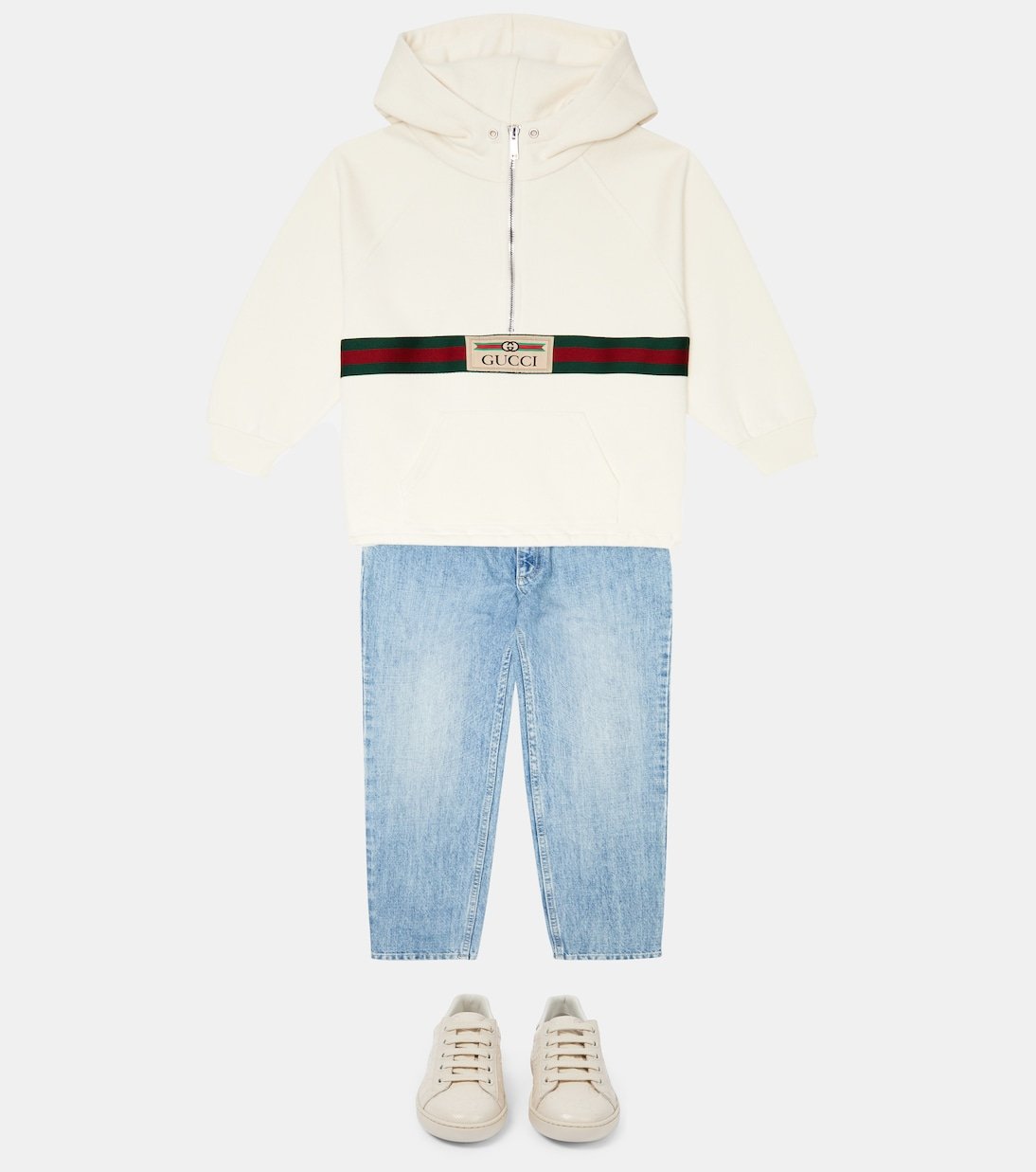 Ce sweat-shirt à capuche partiellement zippé de Gucci Kids est réalisé en jersey de coton doublé de molleton. Rehaussé de la rayure Web signature, il présente une coupe oversize avec une poche kangourou.