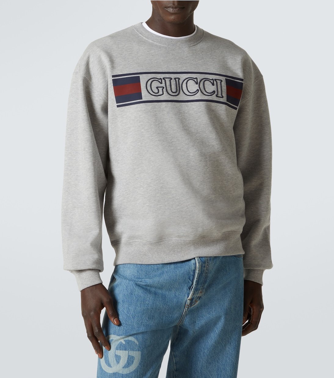 Ajoutez une touche de charme des archives Gucci à votre garde-robe avec ce sweat-shirt. Réalisé en jersey de coton, il est brodé du logo Gucci Web emblématique de la maison.
