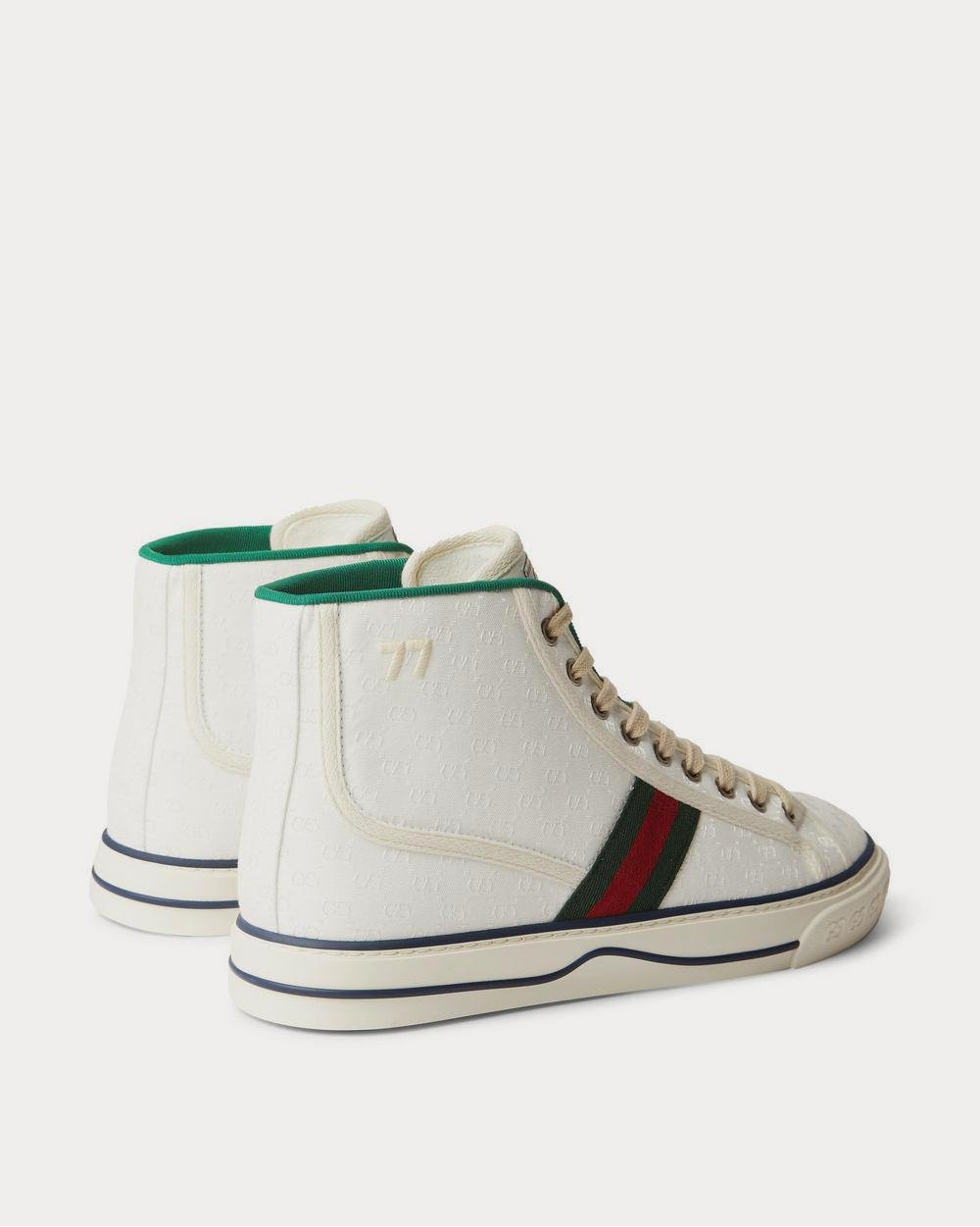 Baskets montantes blanches Gucci Tennis 1977 en toile monogrammée à bordures en sangle