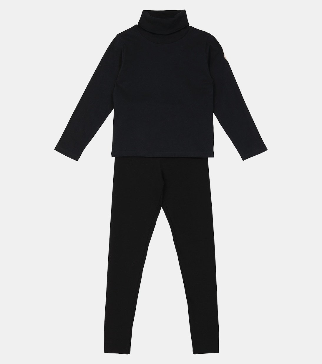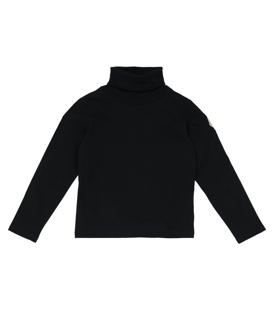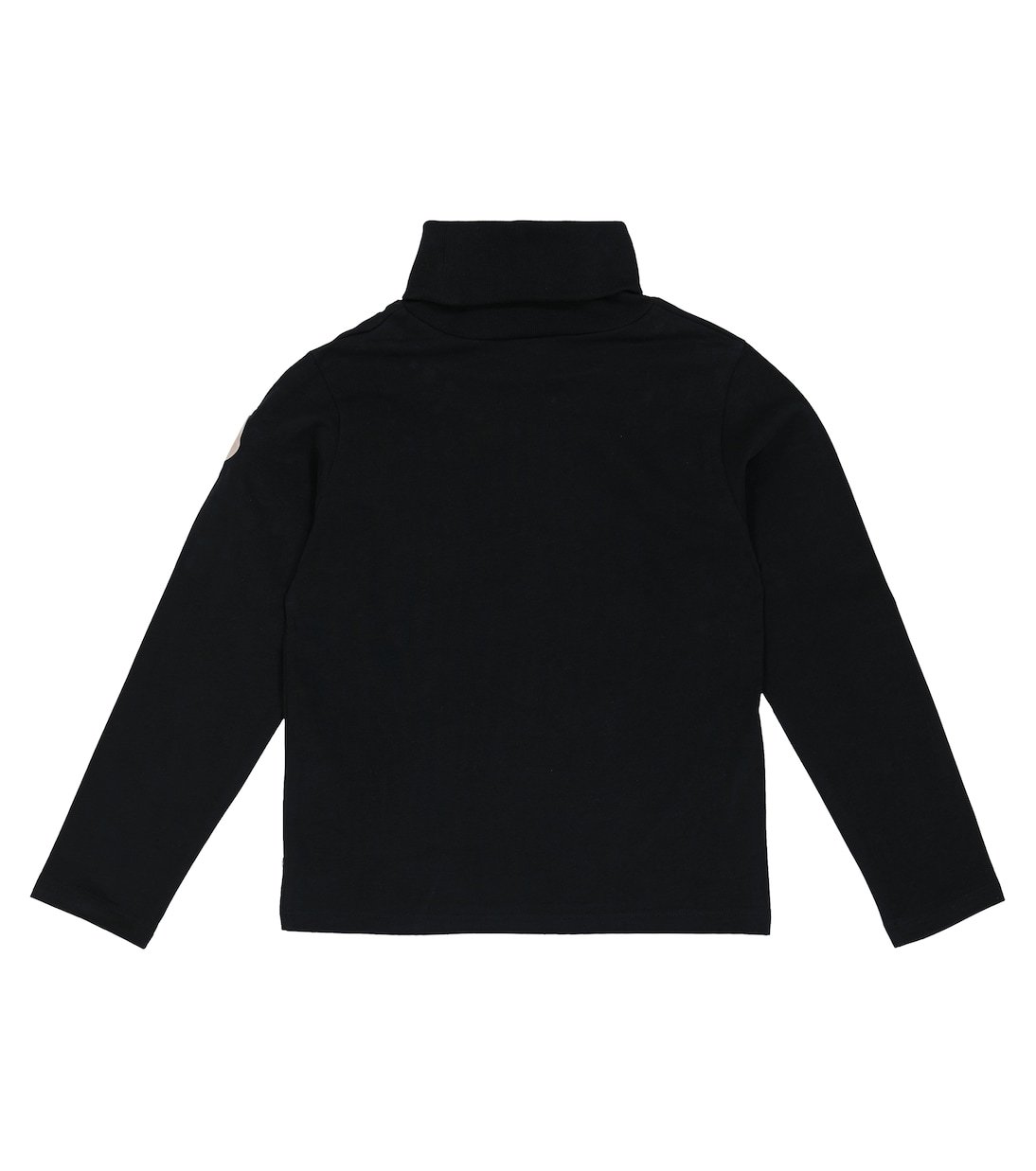 Accentué d’un écusson en cuir rose à logo embossé sur une manche, ce top noir à col roulé côtelé de Moncler Enfant est confectionné en jersey de coton doux.