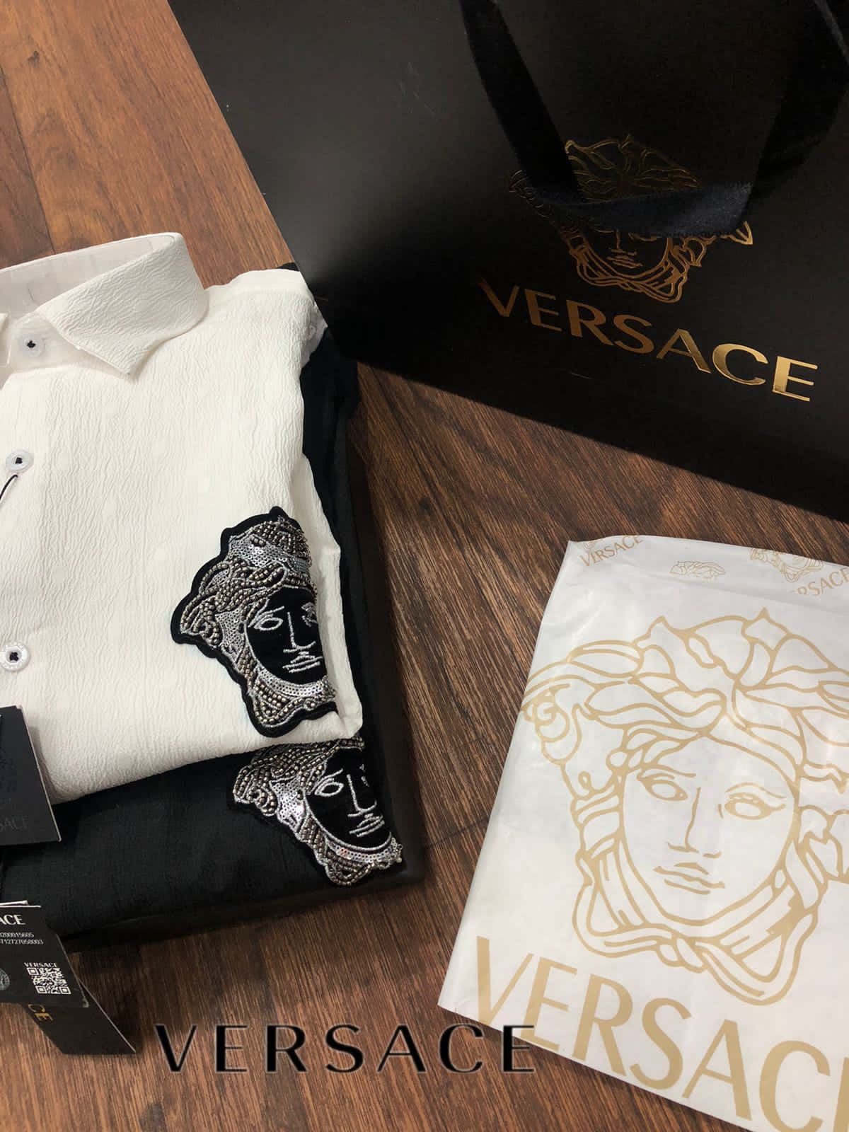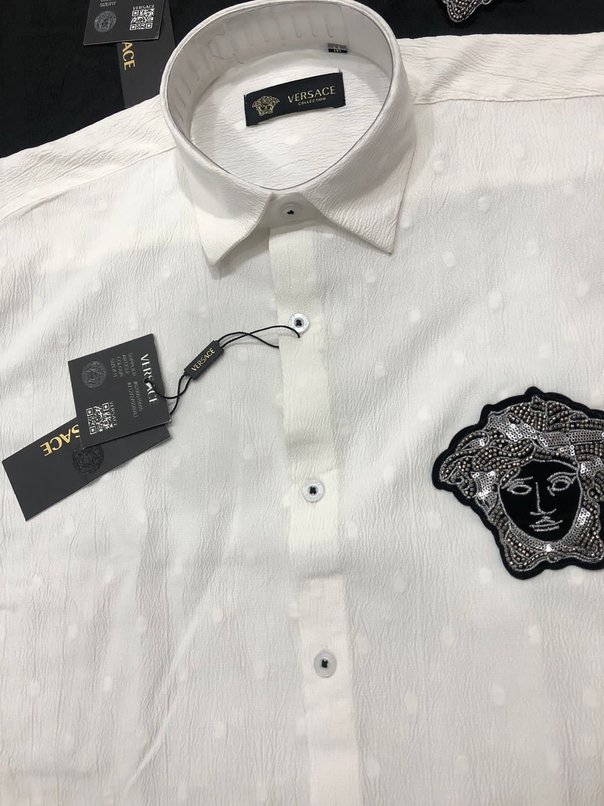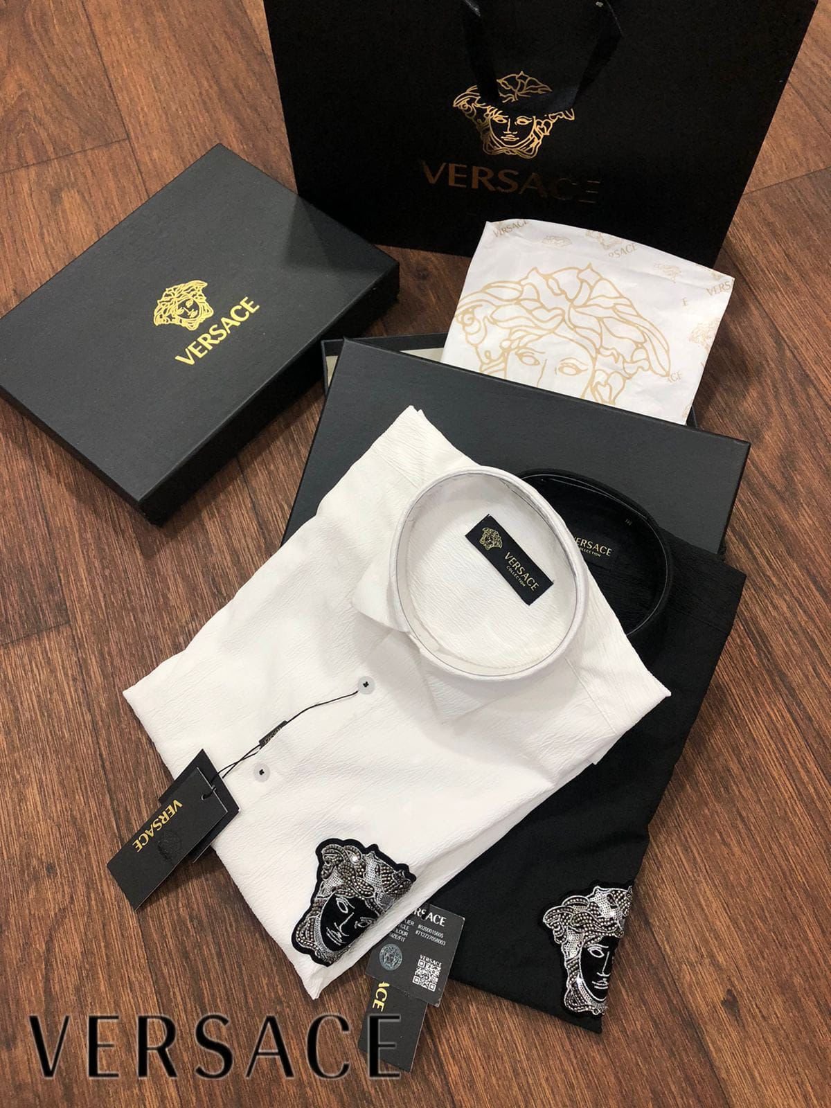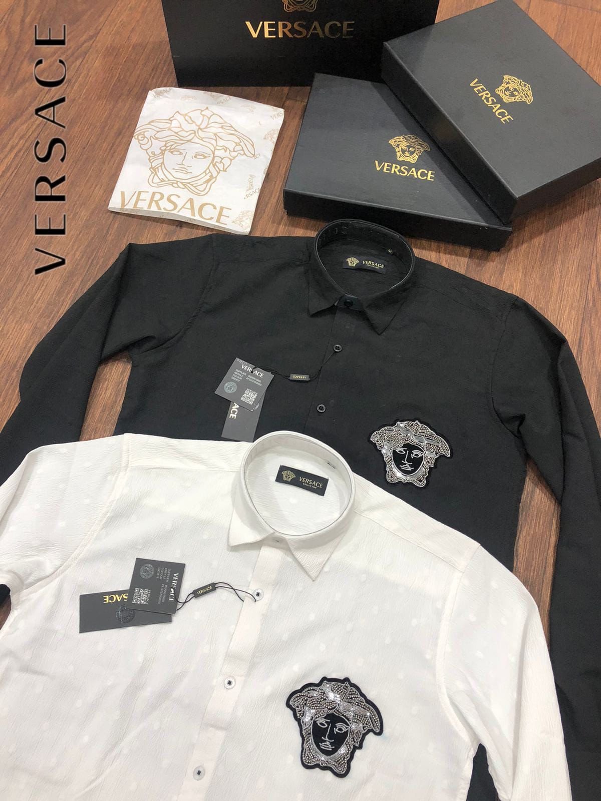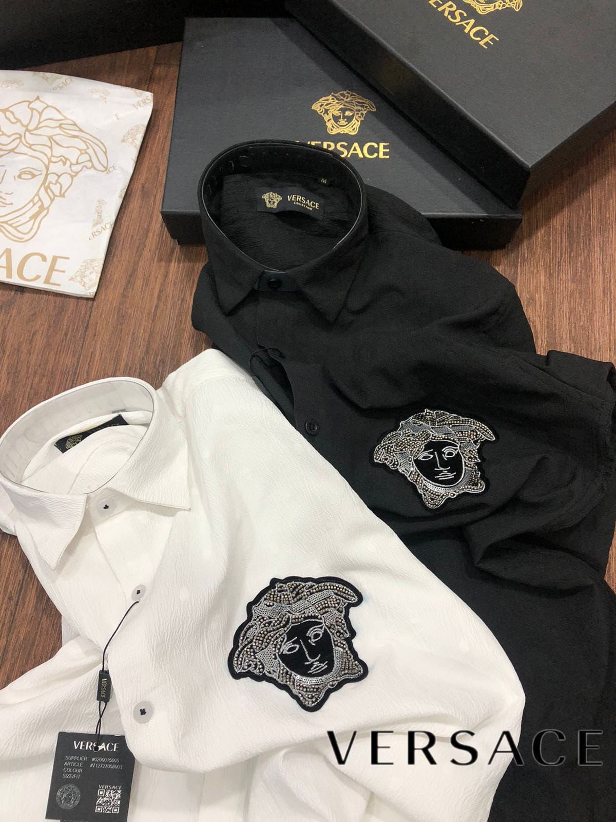 VERSACE || Chemises habillées à manches longues pour homme, noir/blanc uni, logo Medusa