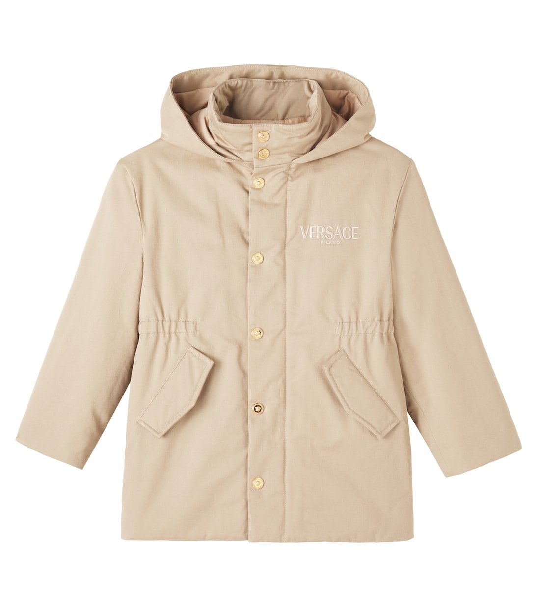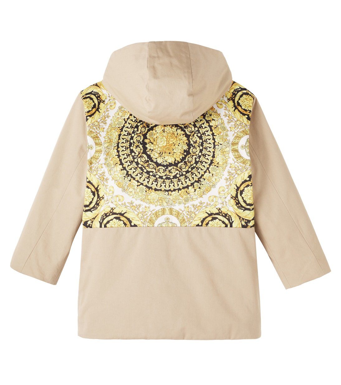 Barocco est l’un des imprimés les plus emblématiques de Versace Kids, qui rappelle l’ornementation du XVIIe siècle. Cette veste en gabardine de coton arbore un imprimé Barocco Foulard au dos et un logo Versace Milano brodé sur le devant.