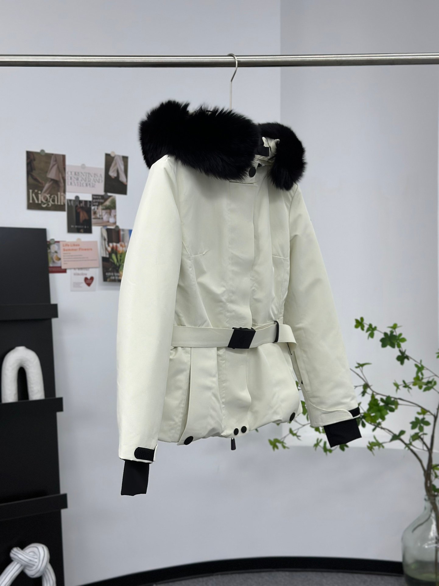 - Capuche réglable avec bordure en peau de mouton amovible