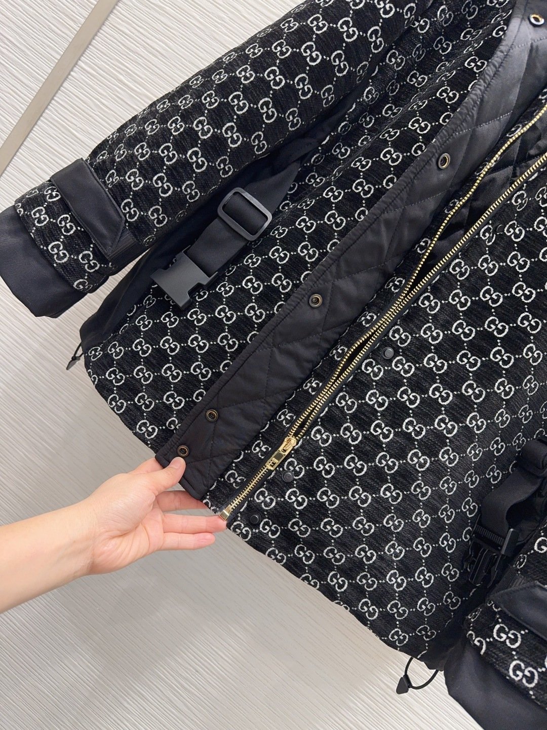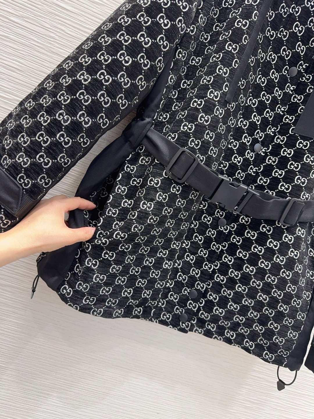Découvrez la veste courte Gucci à imprimé GG, une pièce emblématique qui allie élégance et fonctionnalité. Conçue pour ceux qui recherchent un style sophistiqué avec une touche contemporaine, cette veste est parfaite pour affirmer votre look tout en bénéficiant d’un confort optimal. Sa conception innovante intègre des éléments pratiques et esthétiques, faisant de cette pièce un incontournable de votre garde-robe.