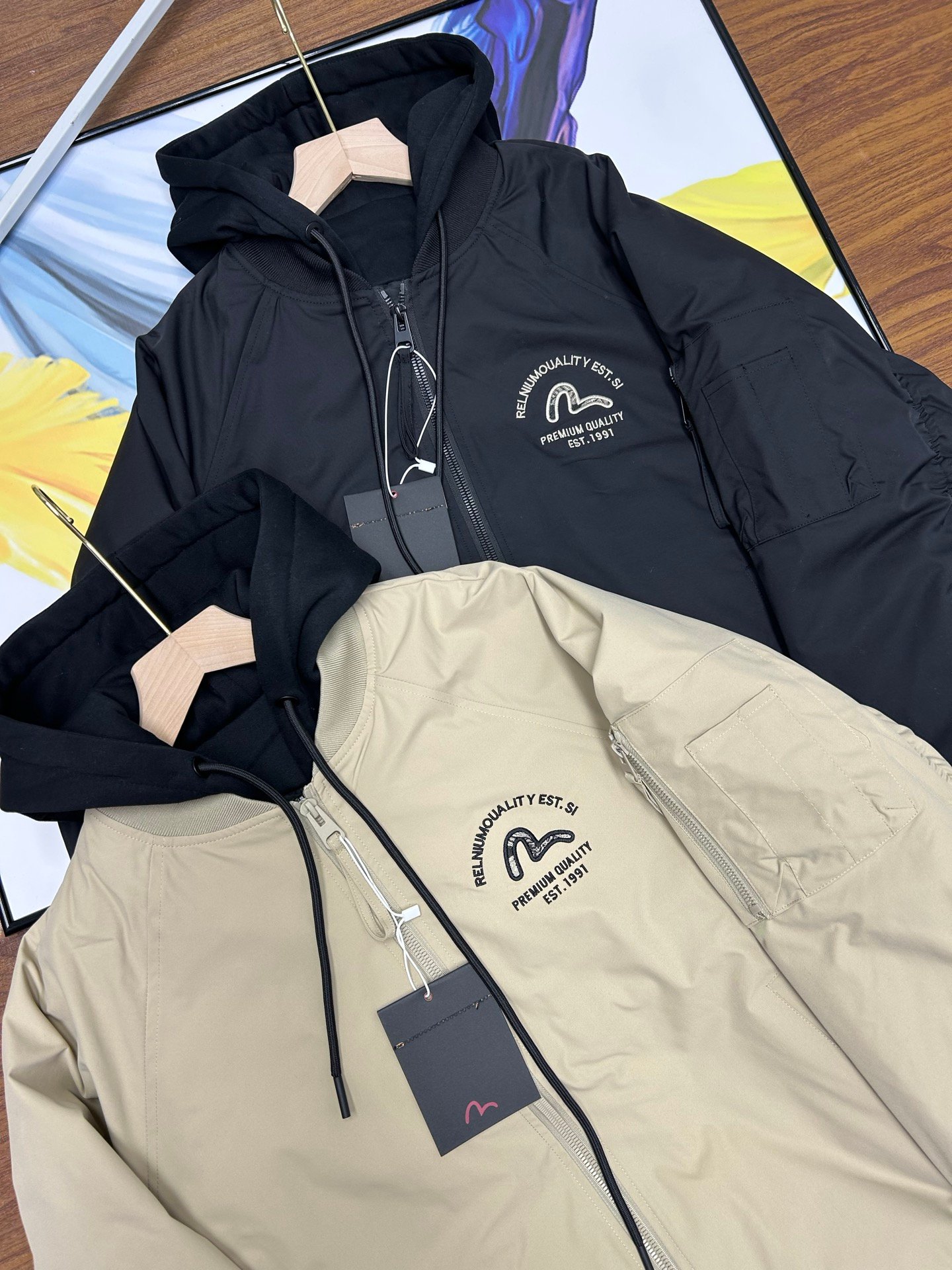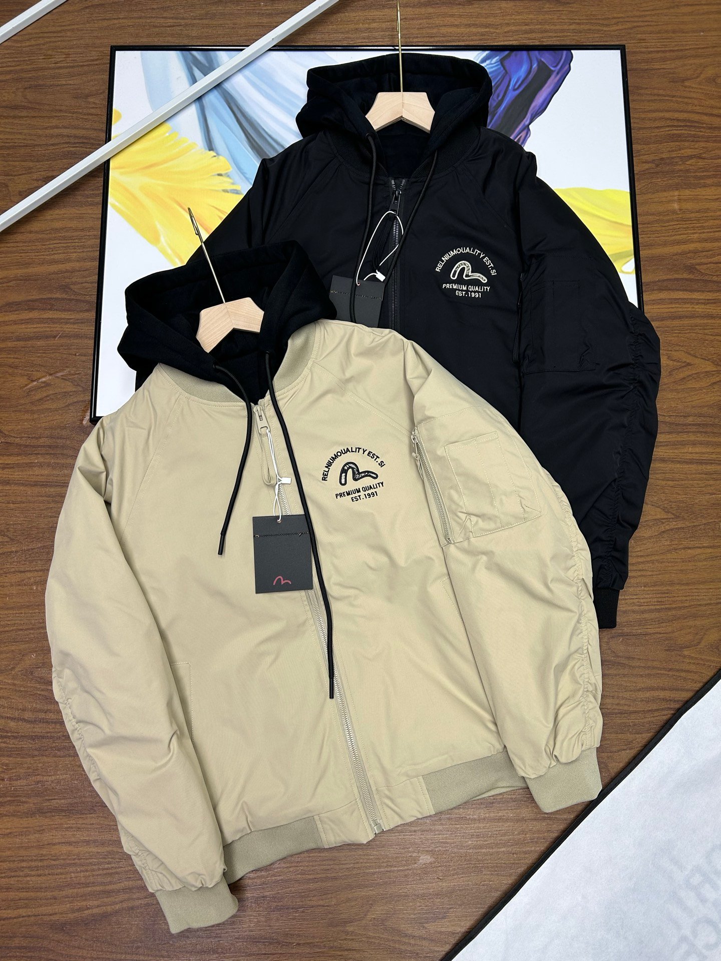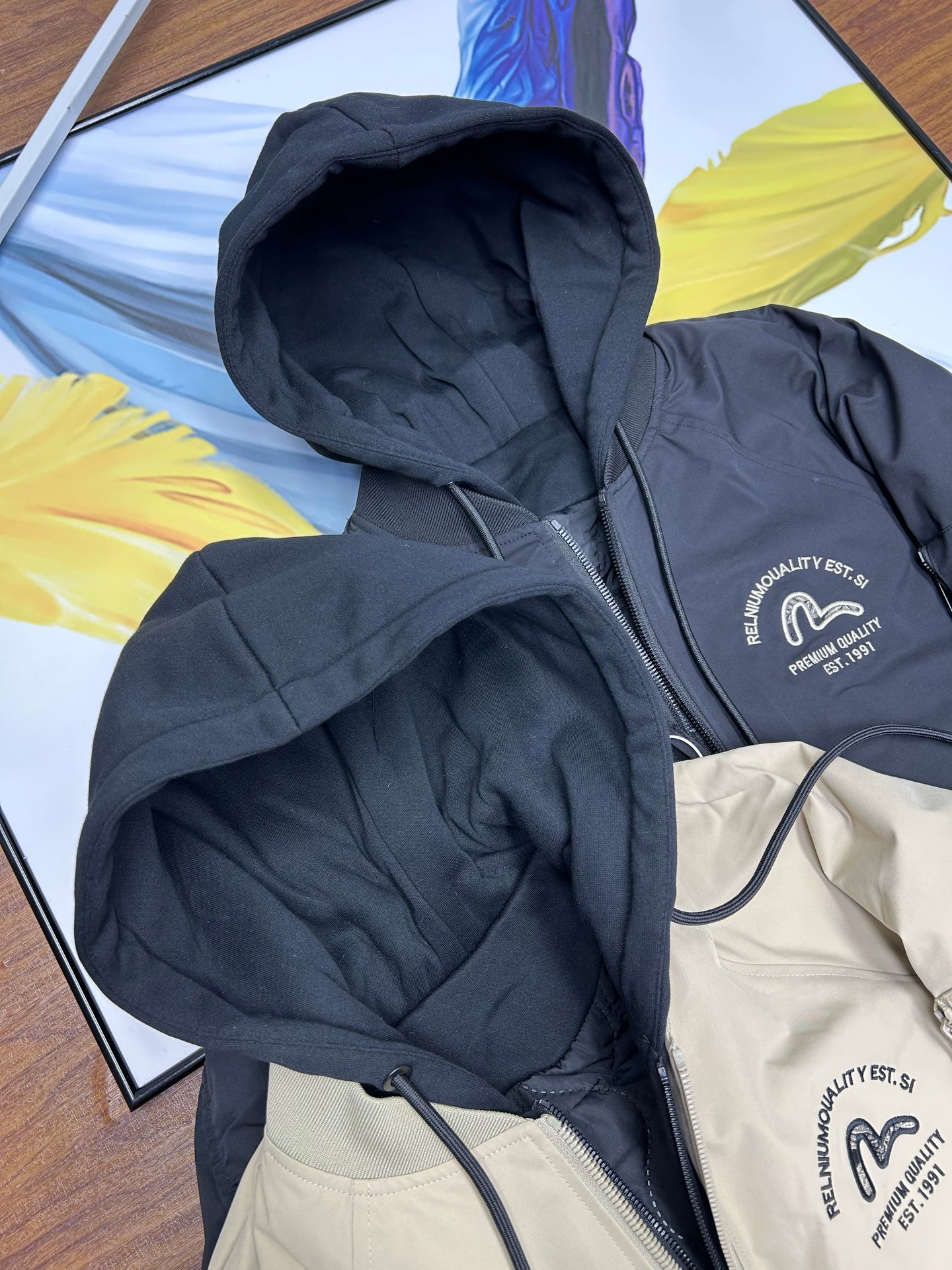 Veste matelassée Evisu élégante avec capuche et logo brodé—Confort et style urbainVeste matelassée Evisu élégante avec capuche et logo brodé—Confort et style urbain