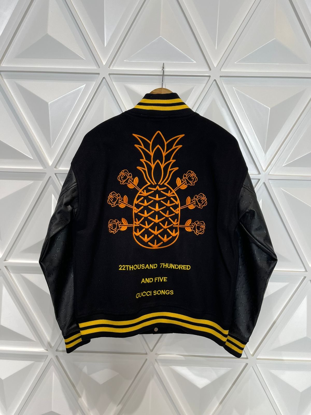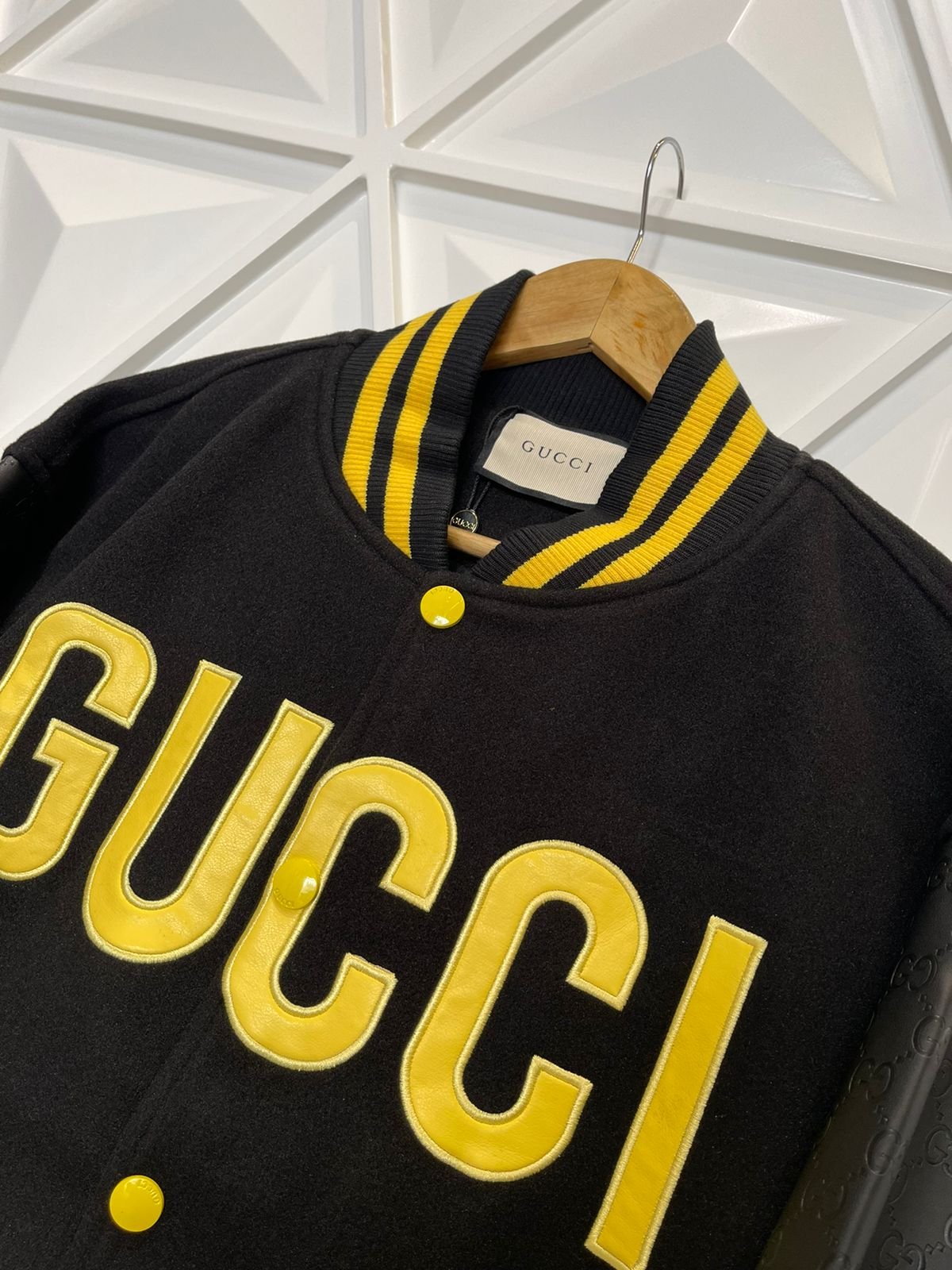 Découvrez les incontournables de l’hiver 2022 : les vestes originales haut de gamme pour homme. Confectionnées avec des manches en cuir universitaire Gucci et une matière en laine graphique, cette veste incarne le luxe et le style. Rehaussez votre garde-robe avec cet article de la boutique tant qu’il est encore temps.