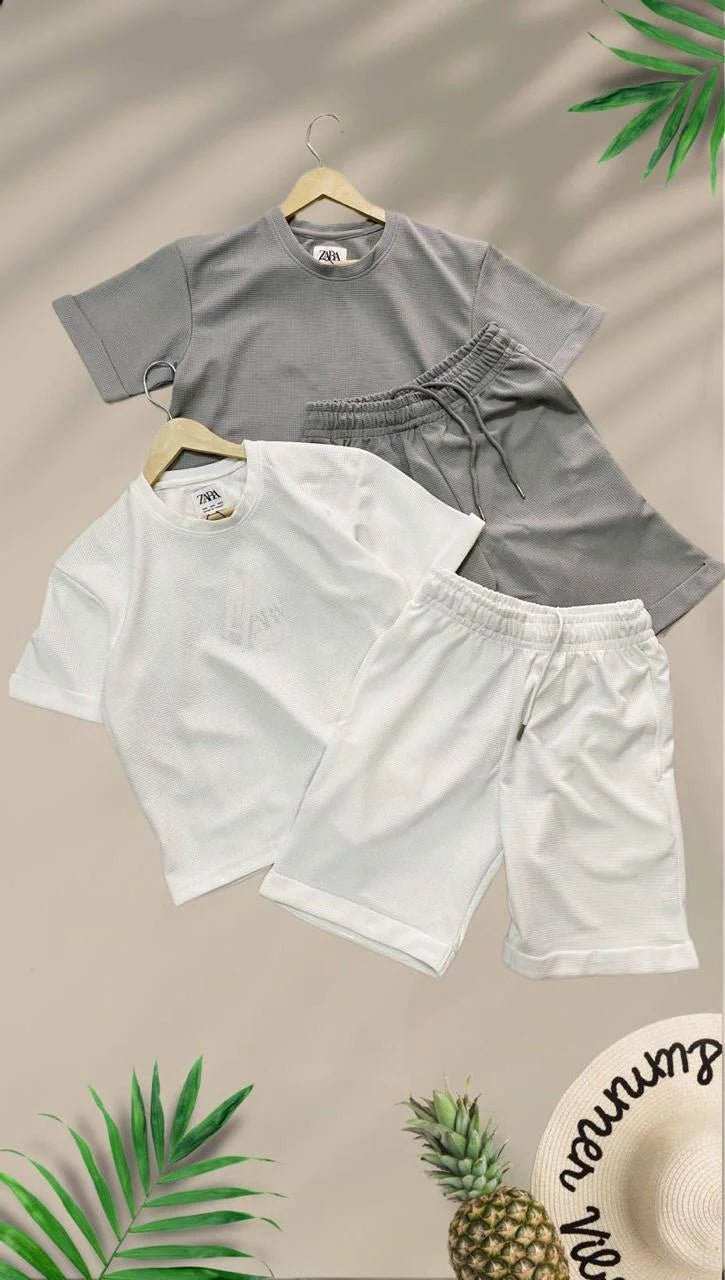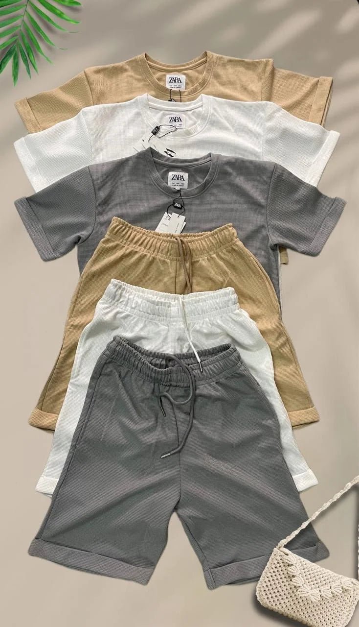 ZARA || T-shirt uni en maille gaufrée et short noué sur le devant